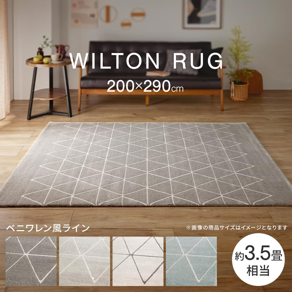 アイリスプラザ 伝統あるヨーロッパ産ウィルトン織ラグ 200×290cm ライン アイボリー エコテックス認証取得 厚さ 1.2cm 静電気防止 床暖房対応 ラグ マット カーペット 54238-076 IV