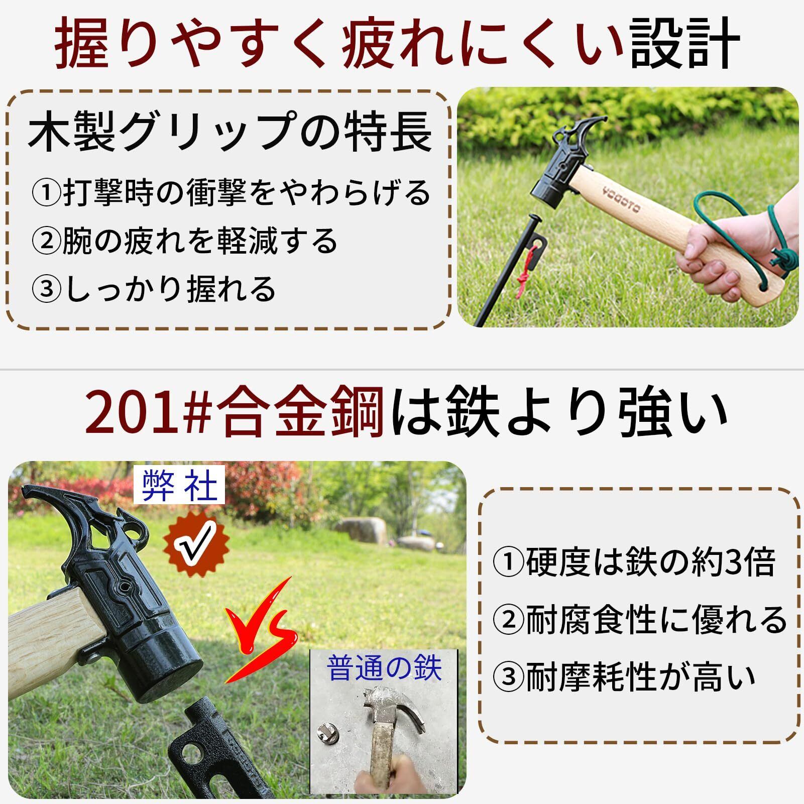 【使いやすい】 適度な重量を持つ丈夫な一体型ヘッドで、手に馴染みやすくて初心者にも使いやすいです。ペグ打ちとペグ抜きだけではなくて、アウトドアでボトルの栓抜きとしても使用できます。