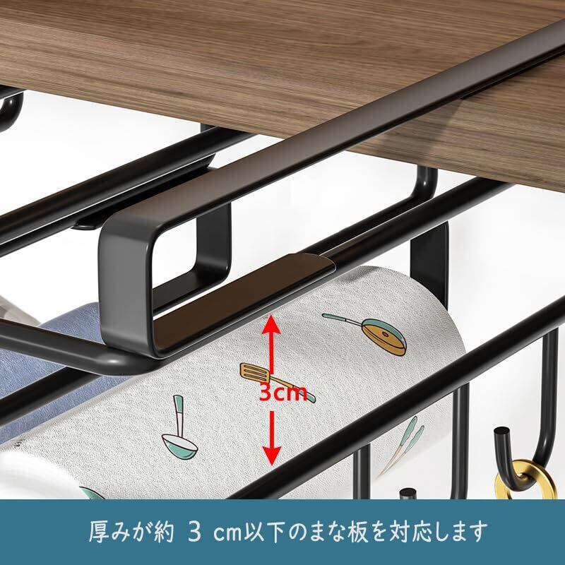 布巾も干せる便利な戸棚下まな板・布巾ハンガー・キッチンペーパーホルダー・ 鍋蓋収納・収納便利なキッチン用品・戸棚下まな板キッチンホルダー(★写真は3Dイメージです、実物は多少異なる場合がありますので、ご了承ください。)