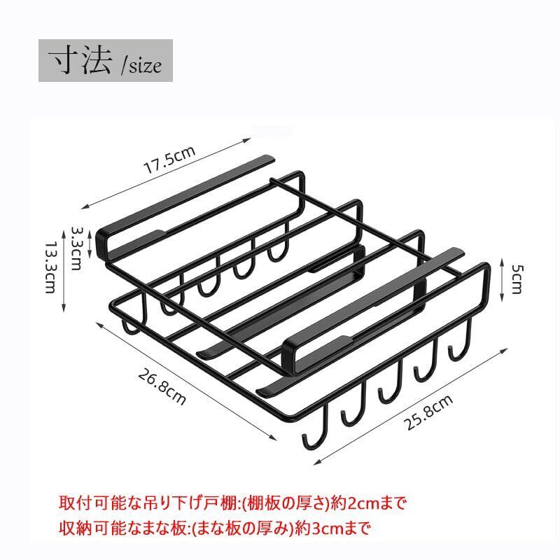 【在庫セール】GOENDR まな板スタンド 吊り下げラック 戸棚下まな板ホルダー 鍋蓋収納 まな板収納 吊り戸棚下 布巾ハンガー 戸棚下多機能ラック キッチン収納 ステンレス製 穴あけ不要 ネジ止め不要 黒【奥行き25.8㎝】