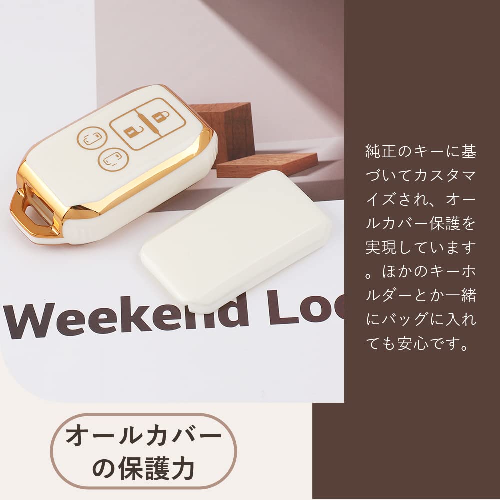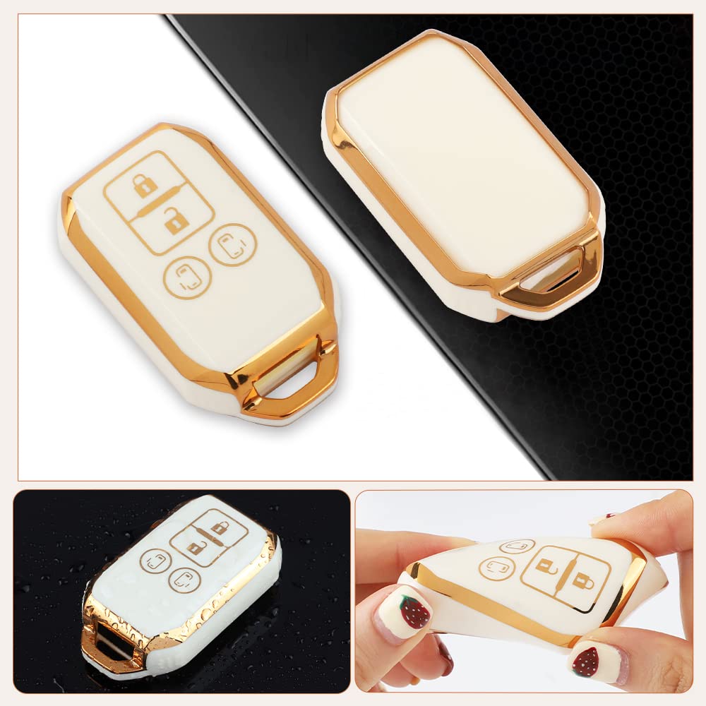 [Futwod] スズキ ソリオ スペーシア ジムニー ハスラー スイフト ジムニーシエラ スベーシア クロスビー フレアワゴン 専用 キーホルダー キーケース キーカバー キーシェル 4ボタン カスタム パーツ TPU 軽量 スマートキー カバー 傷防止 白