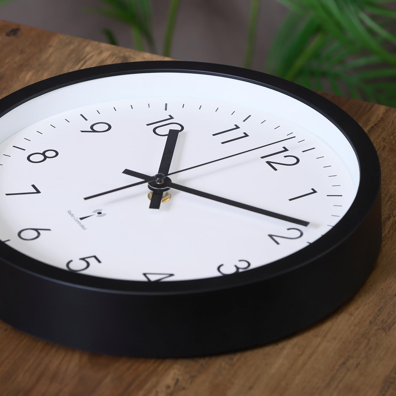 不二貿易 壁掛け電波時計 静音 アナログ 直径25cm ブラック 70475