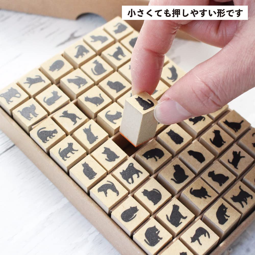 黒猫 グッズ 雑貨 猫 文房具 可愛い スタンプ ネコ おしゃれ はんこ 木製 ゴム印 54個 セット プレゼント かわいい 日本製