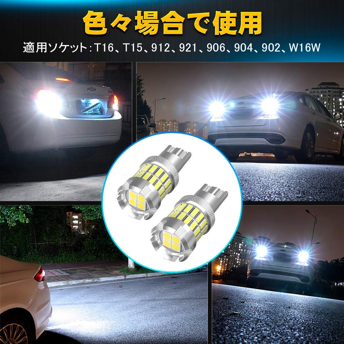 【製品仕様】ソケット形状:T15/T16用、LEDチップ:34連3030+4014LED、極性+-:無極性、消費電力:約4.8W、電圧:12V、ルーメン:1400LM、発光色:ホワイト、使用寿命:50000時