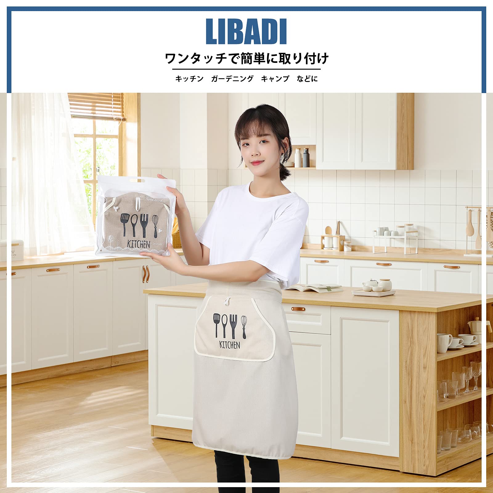 [Libadi] サッと着けられる ワンタッチエプロン 家庭用 防水エプロン シワになりにくい 人気 おしゃれ カフェエプロン 前掛け ポケット付き 撥水 汚れにくい 女性用 男女兼用 無地 エプロン
