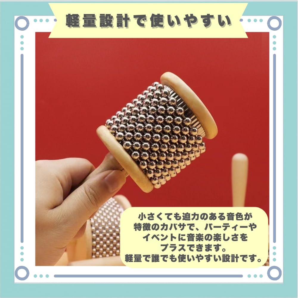 【簡単操作で本格的なリズム】ハンドルを握って数珠を動かすだけで、初心者でも本格的なリズムが楽しめる楽器です。【子供にも優しい】小さな子供の手でもしっかり握れるハンドル形状。快適設計で楽しく演奏できるよう工夫されています。【軽量設計で使いやすい】小さくても迫力のある音色が特徴のカバサで、パーティーやイベントに音楽の楽しさをプラスできます。軽量で誰でも使いやすい設計です。【音楽教育にも最適】協調性や創造性を育む学びのツールとしても活躍。音楽教室などの教育の現場にも最適なアイテムです。【安心の返品・返金】もし商品にご満足頂けない場合、商品到着から30日間返品・返金対応させて頂きます。また、お困りごとがございましたら、メールサポートにて24時間日本人専任スタッフが対応致しますので、安心してお買い求めください。