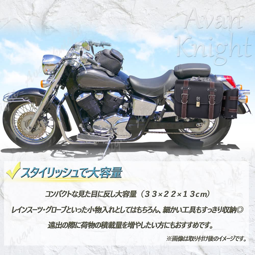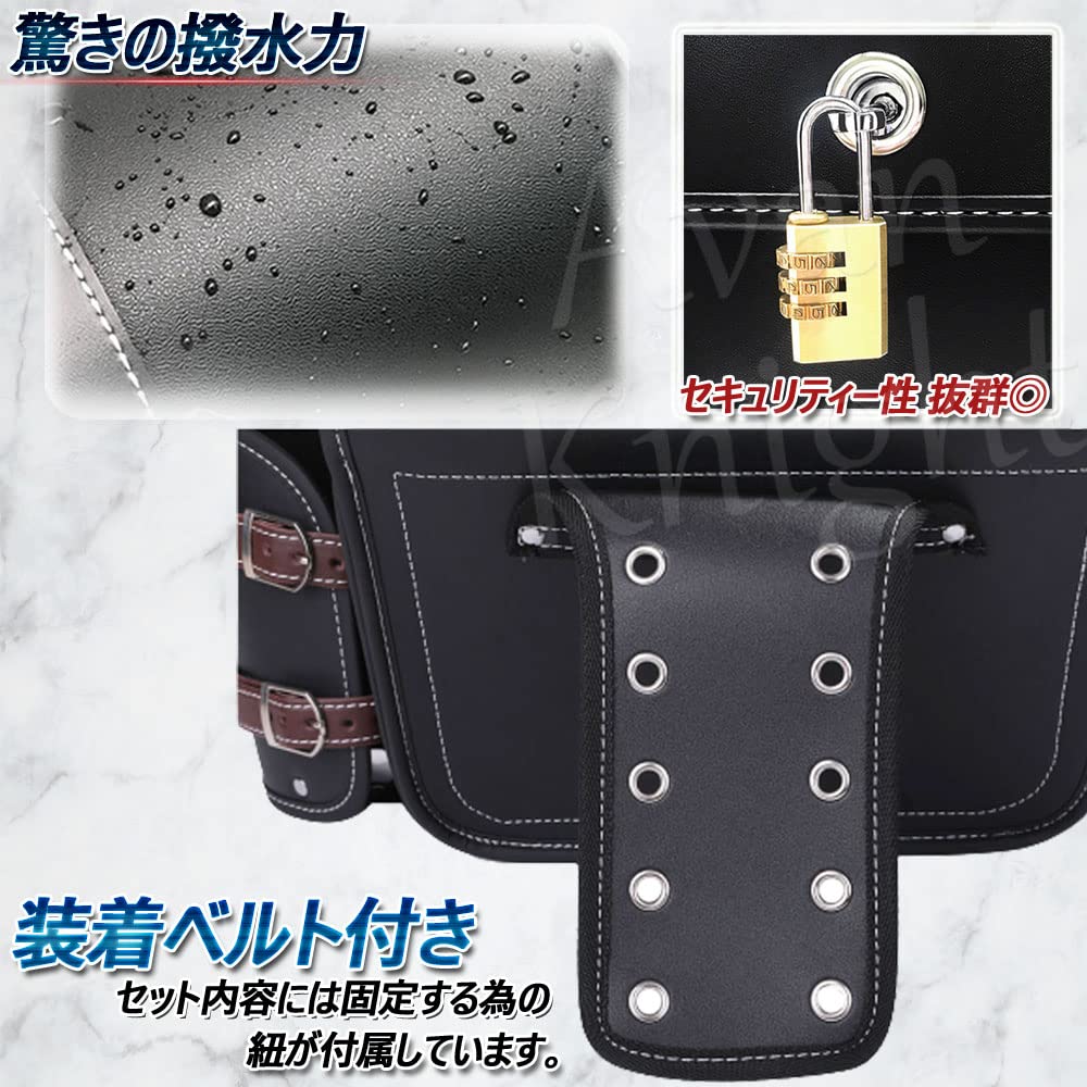 【数量限定】バイク サイド バッグ PUレザー ハーレー ツール サドル バッグ 南京錠 鍵 付き ケース 小物入れ 防水 大容量 シート ツーリング アウトドア ブラック ブラウン 汎用 KRB272 (ブラック×ブラウン 1個)