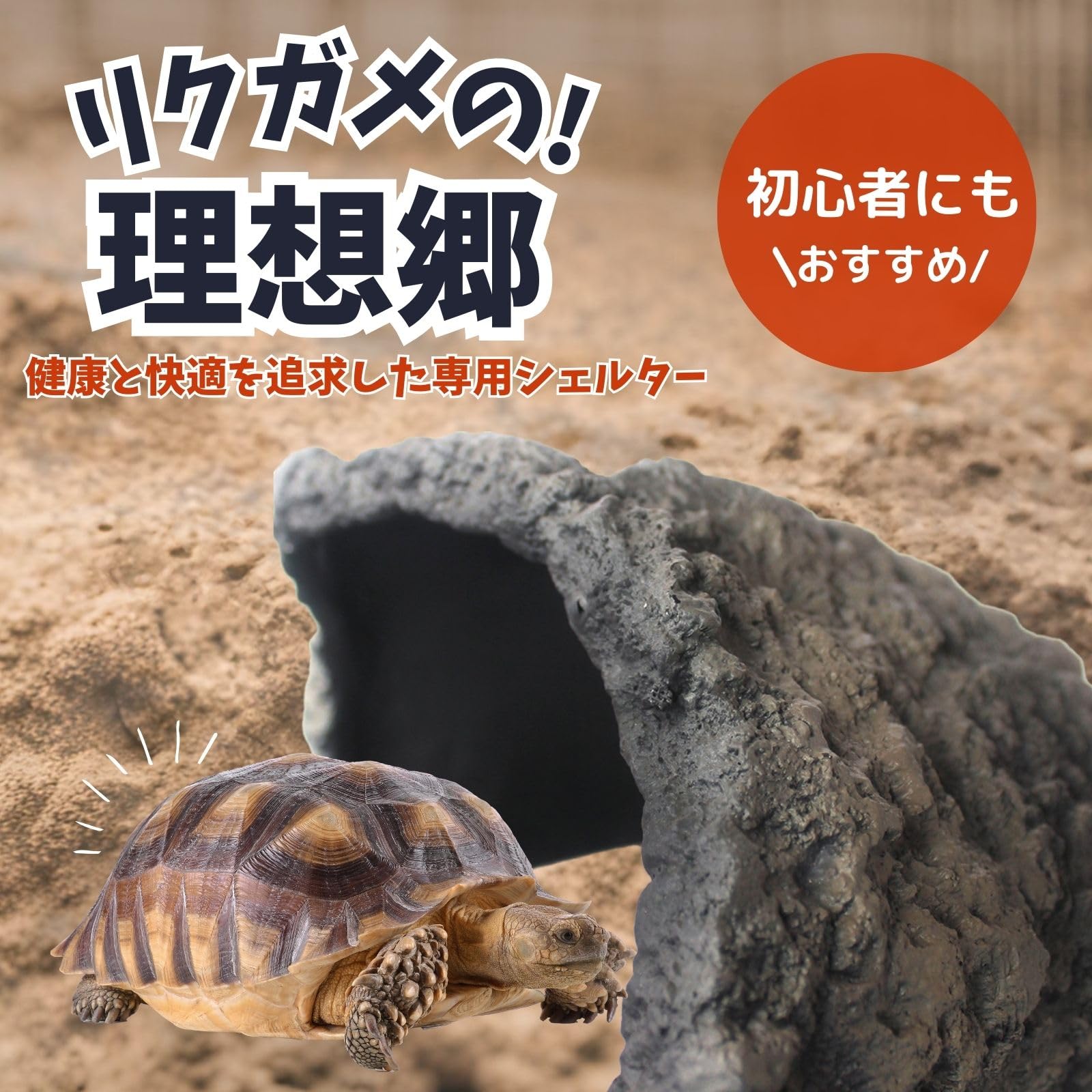 リクガメのために設計された専用 亀 シェルター:陸亀 シェルターは、かめの健康と快適さを追求した、カメのための安心して隠れることができる大型のロックシェルターです。陸亀が落ちく理想的なサイズ・形状・材質を厳選。初心者にもおすすめな、かめの隠れ家です。