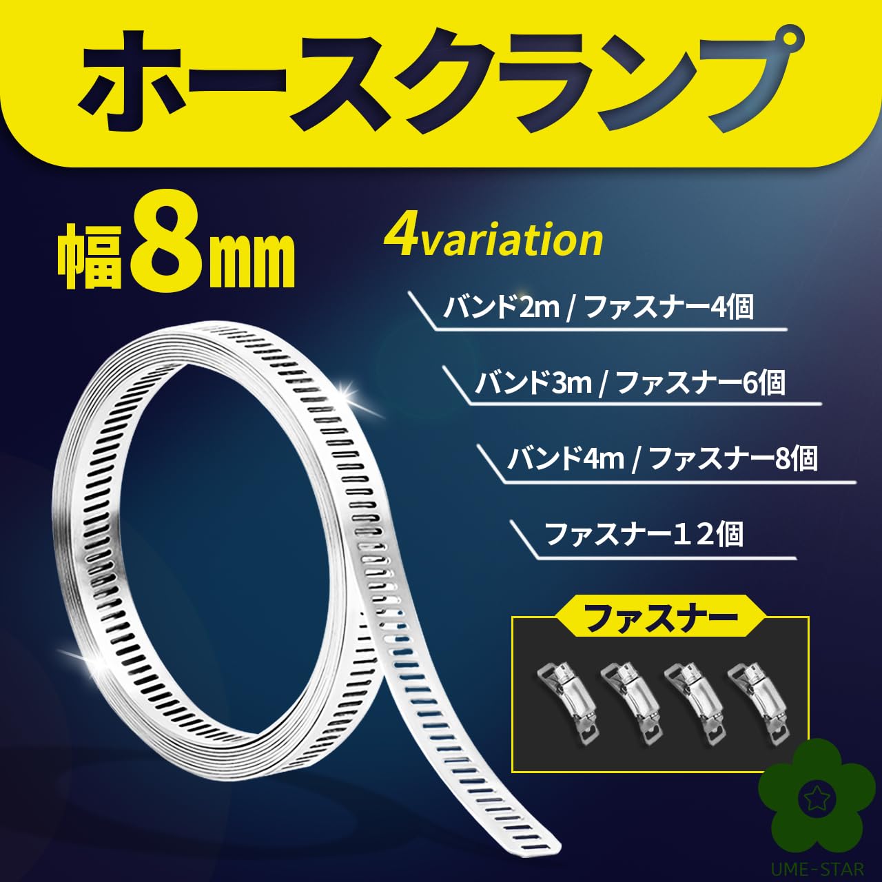 【数量限定】UME-STAR ステンレスバンド ダクトバンド ホースバンド 8mm幅 ステンレス クランプ バンド 自在バンド (長さ3m 留め具 6個)