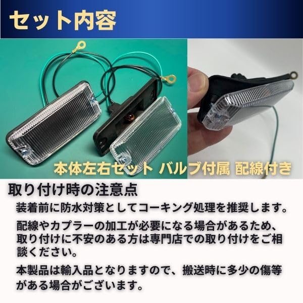 【取付時の注意点】 装着前に防水対策としてコーキング処理を推奨します 配線やカプラーの加工が必要になる場合があるため、取り付けに不安のある方は専門店での取り付けをご相談ください 輸入品となりますので、搬送時にに多少の傷等がある場合がございます また製造工程上、稀にバリ(加工残り)が見られることがありますが、気になる場合はご連絡ください 問題があれば交換等迅速に対応いたします