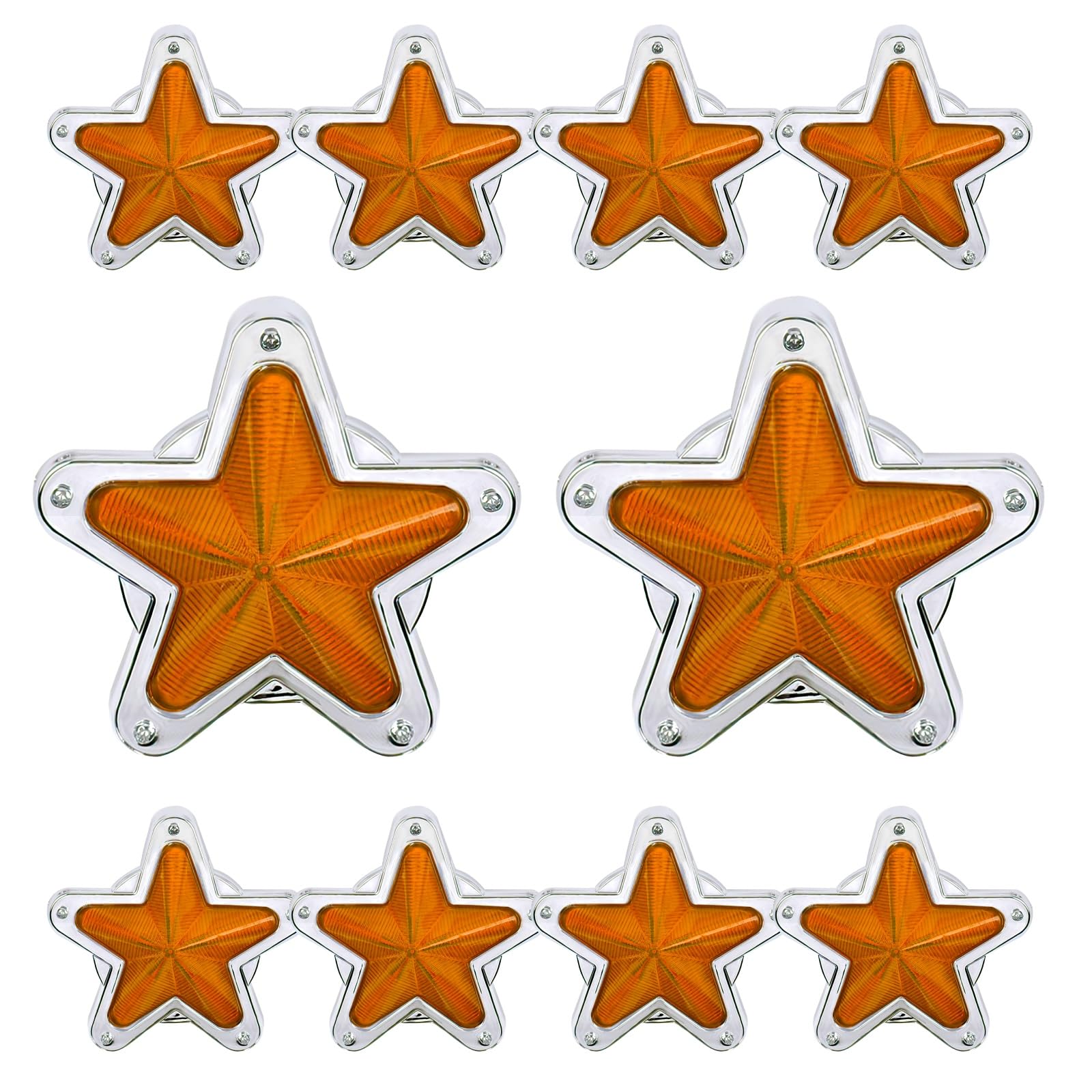Meliore LED サイドマーカー 星型 12V 24V マーカー ランプ トラック デコトラ レトロ 旧車 10個 セット イエロー オレンジ アンバー