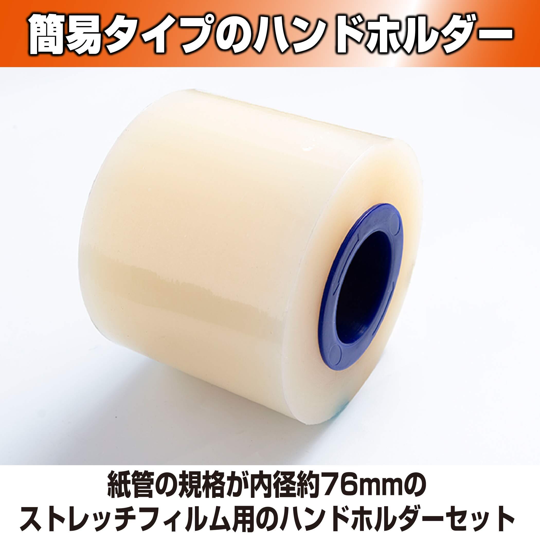 ストレッチフィルム用のハンドホルダーセット:紙管の規格が内径約76mmのストレッチフィルム用のハンドホルダーセットとなっております。簡易タイプのハンドホルダーとなっていますので、取り入れやすいといえるでしょう。