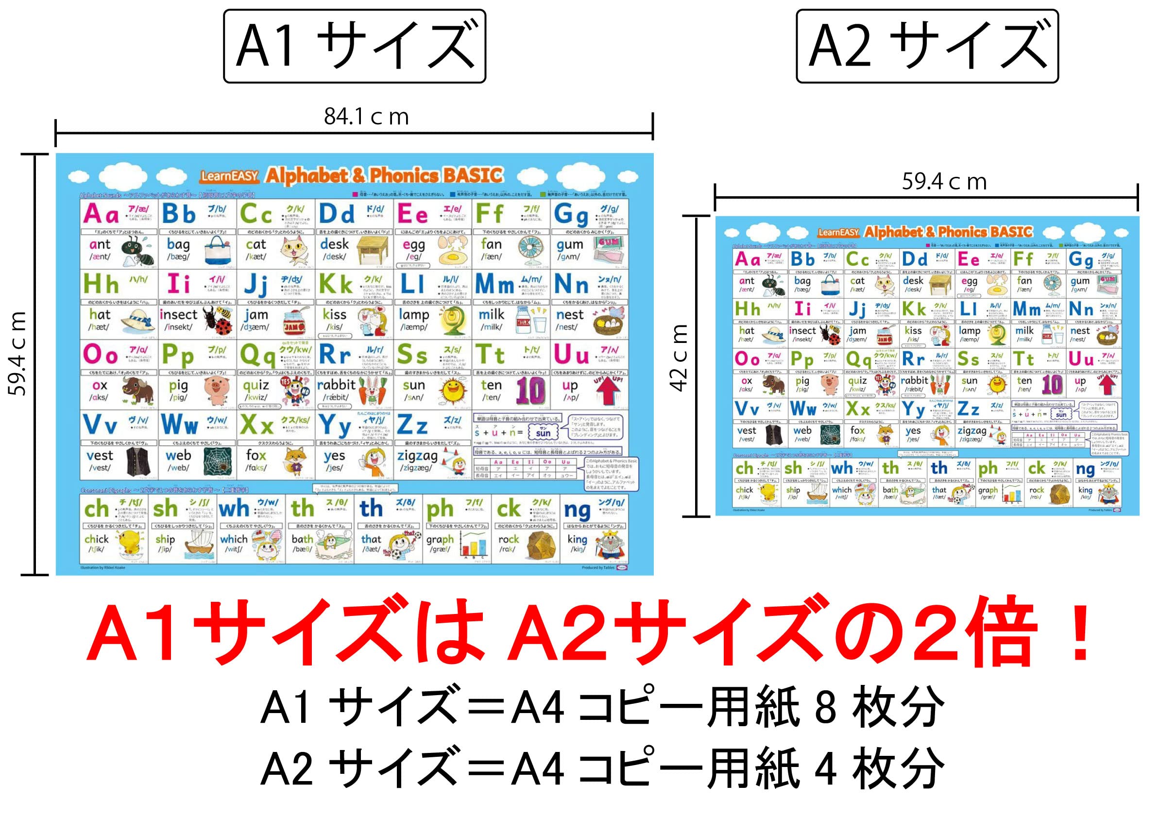 【特価セール】LearnEASY アルファベット&フォニックス表ポスター ベーシック 解説付き 音声QRコード付き ABCポスター ルール 一覧 教材 小学校受験 (お部屋用【大-A1サイズ】)