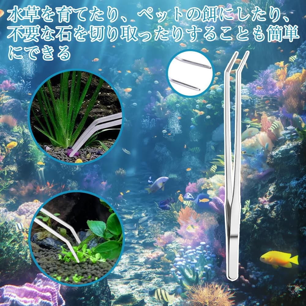 【多機能】ストレートタイプとカーブタイプの2本セットがあります。水槽内の流木やオブジェの配置換えも小型の水槽なら、手を水槽内に入れることなく行えます。