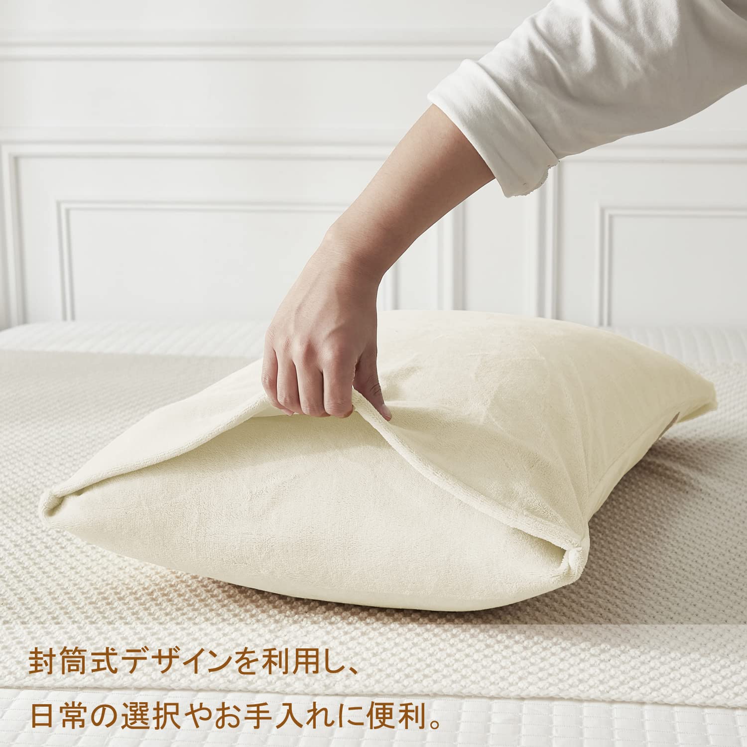 枕カバー 秋冬用 二枚セット あったか マイクロファイバー まくらカバー フランネル パイル地 ピローケース ふわふわ 柔らかく肌触り 暖かい 洗える 静電気防止加工 封筒式 アイボリー 43×63cm