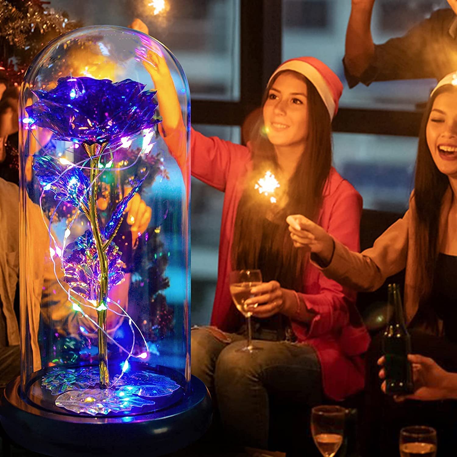 FairyHouse枯れない花 バラ造花 LEDライト 電池式 24Kゴールドローズ 薔薇 花束 フラワーライト フラワーギフト バレンタインデー 母の日 誕生日 結婚記念日 クリスマス お祝い プレゼント 女性 妻 彼女への贈り物 (パープルローズ+カラーライト)
