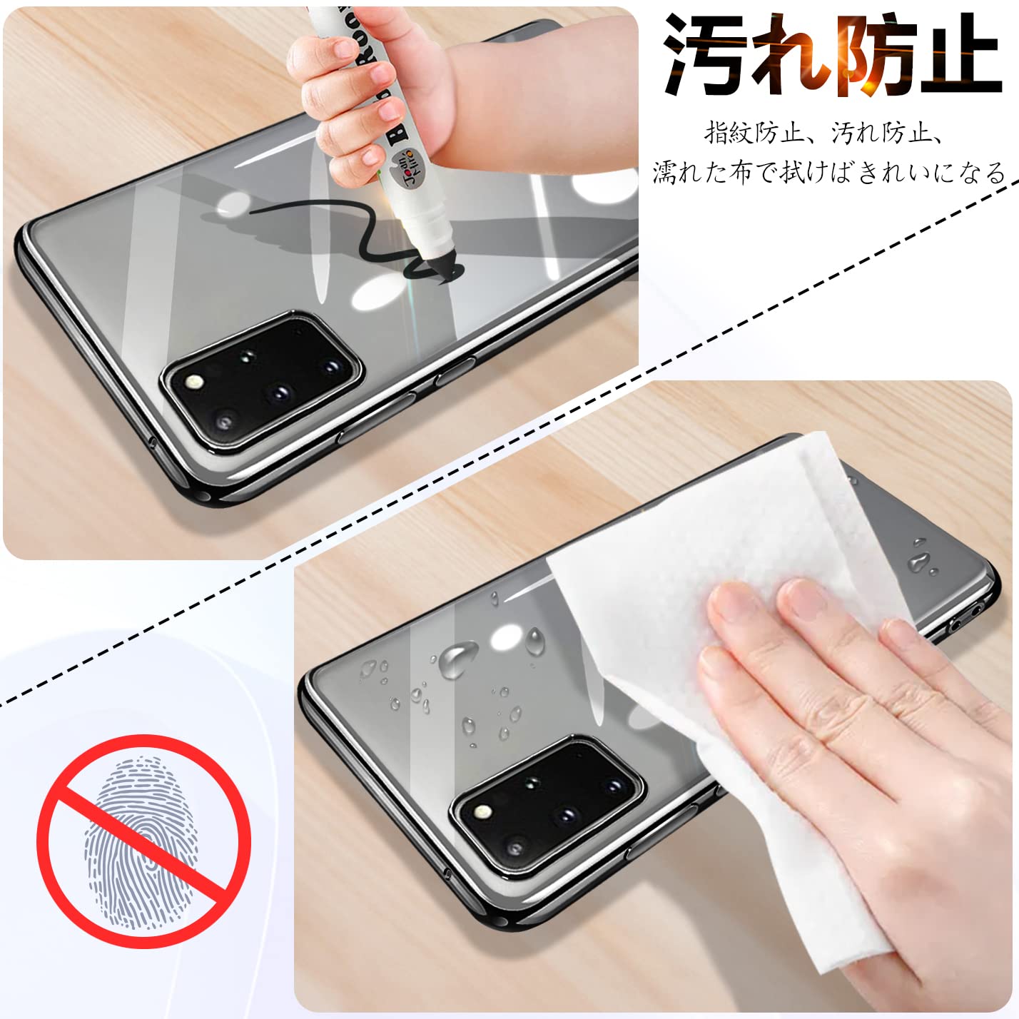 Galaxy S20 plus ケース クリア 黒 ギャラクシーs20+ SC-52A SCG02 カバー 透明 耐衝撃 軽量 薄型 tpu 背面クリア 黒縁 メッキ加工 スマホケース ソフト ストラップホール付き ワイヤレス充電対応(紫砂ブラック)