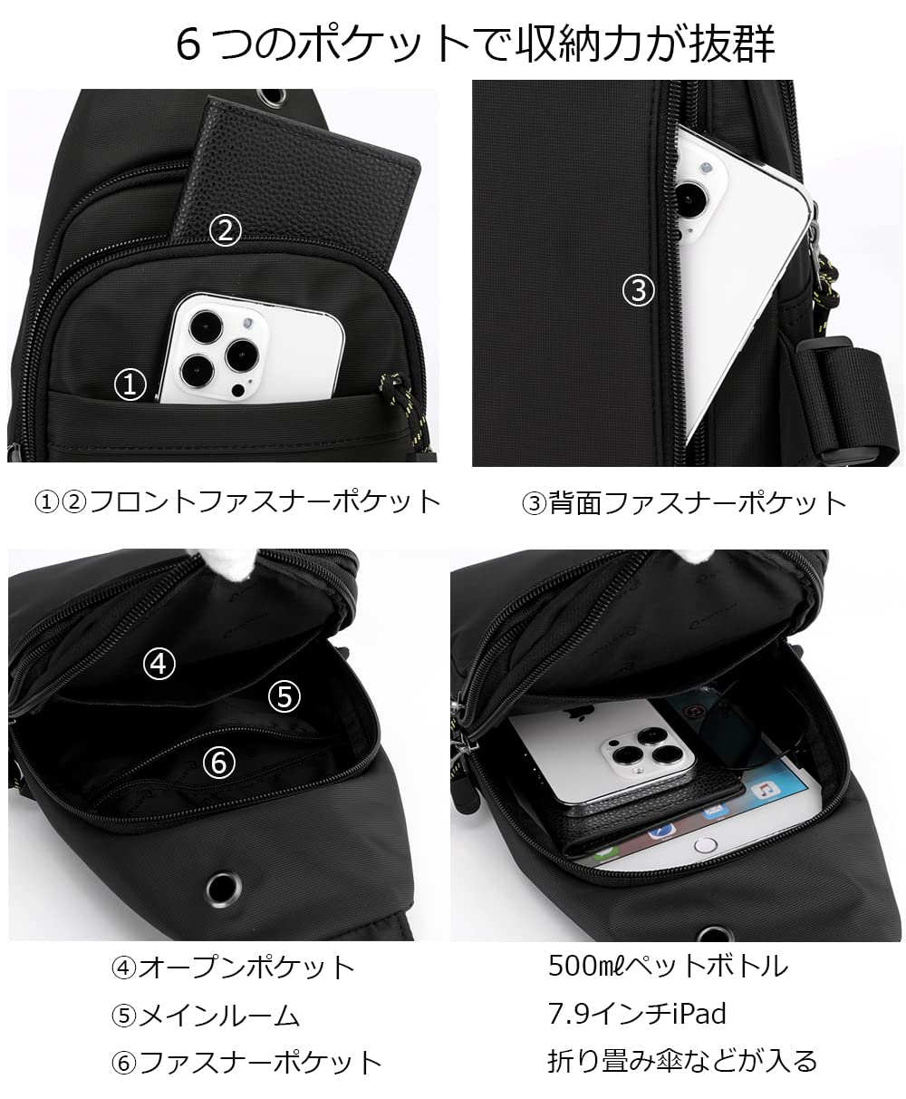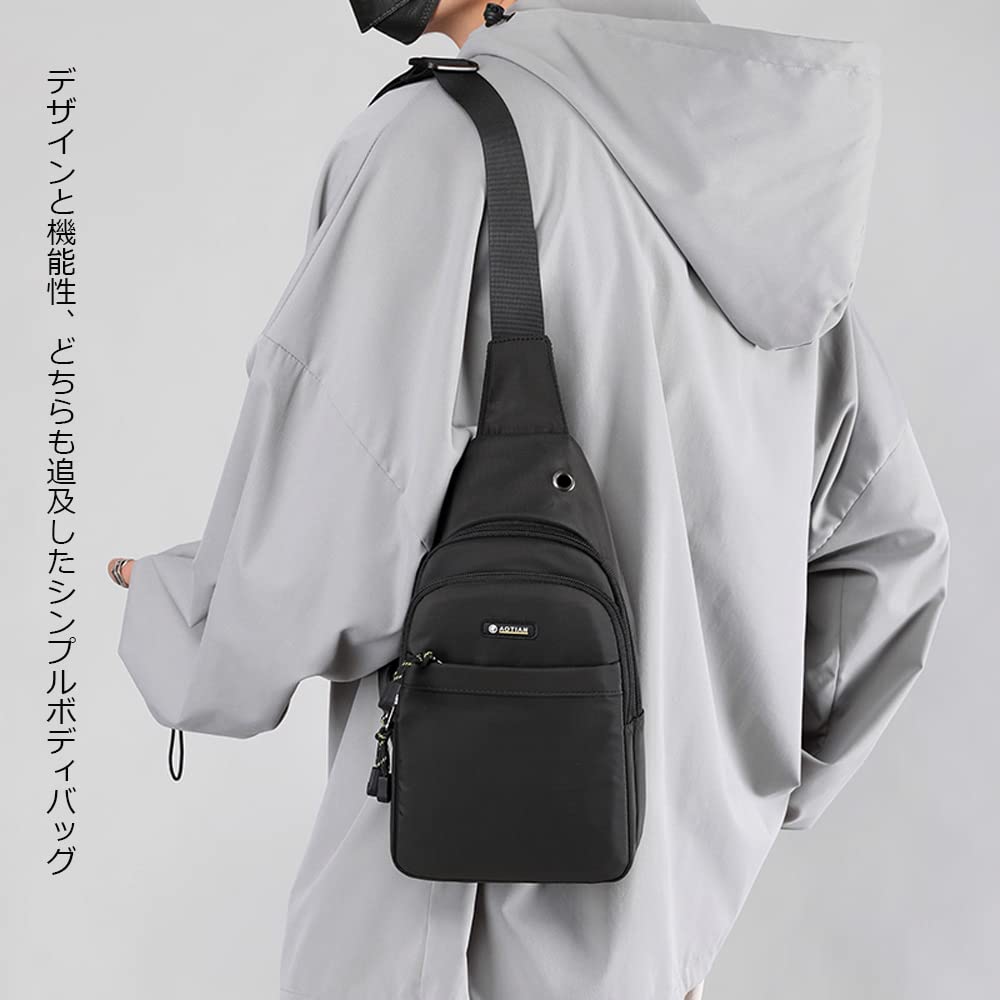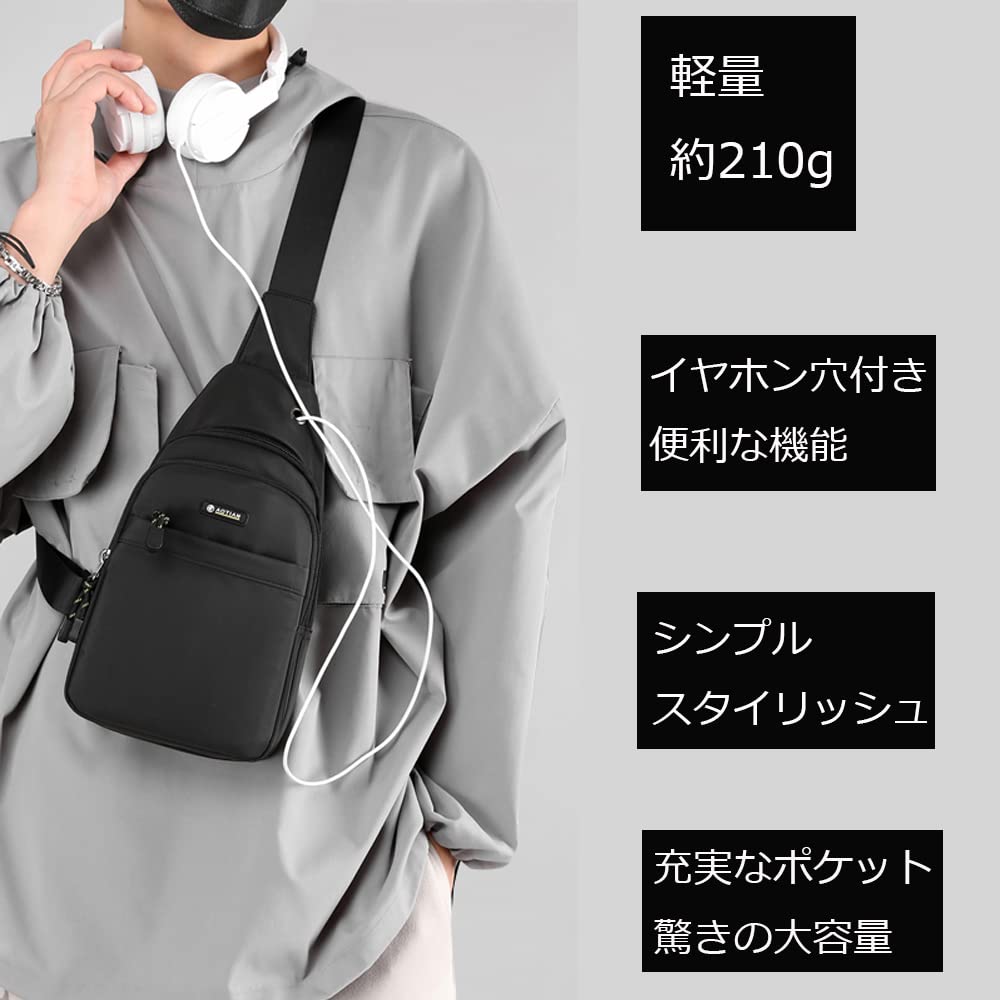 [manukori] ワンショルダーバッグ メンズ 小さめ 斜め掛け 肩掛け ナイロン 軽量 多機能 ボディバッグ 通勤 通学 イヤホン穴付き 男女兼用