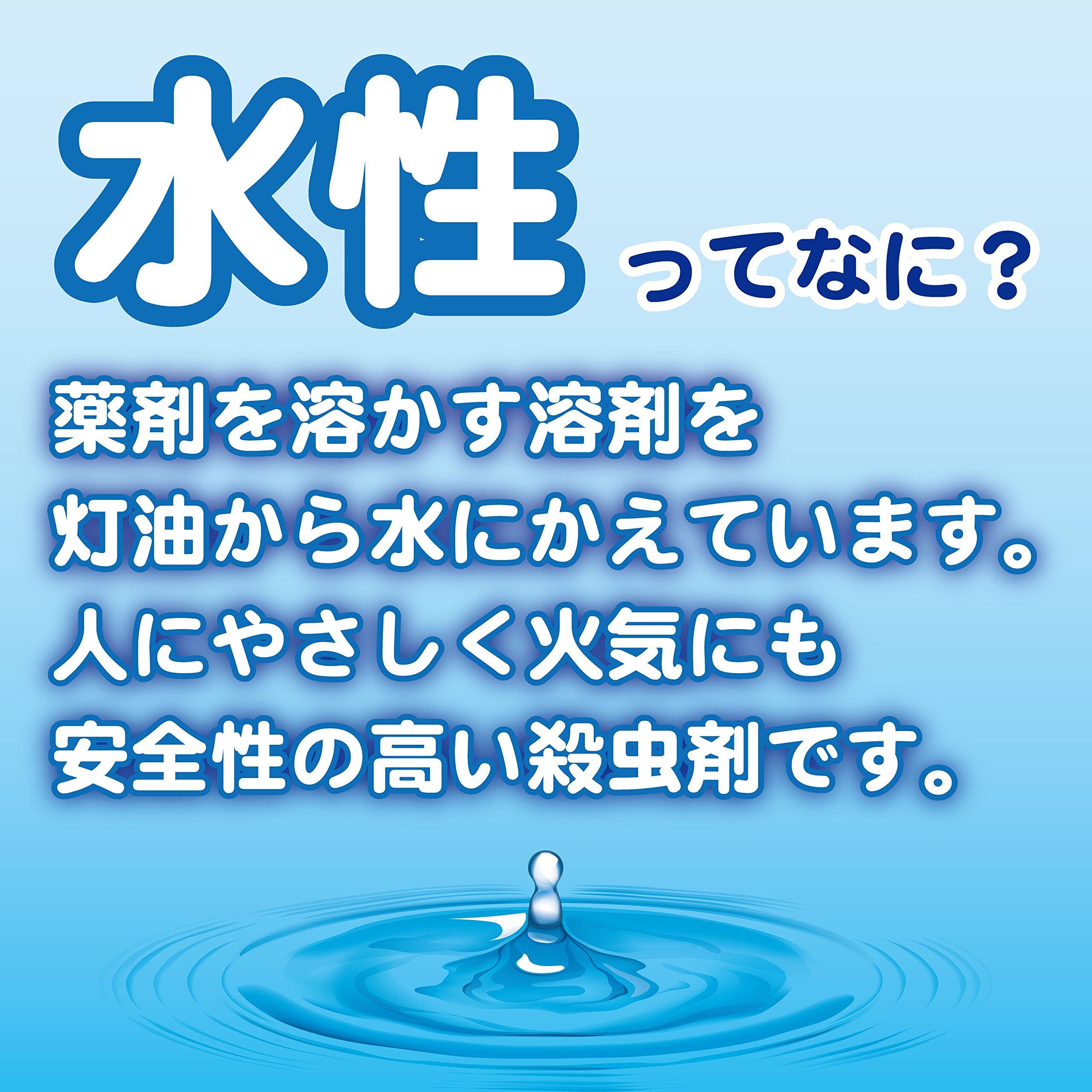 【特徴】リビングなど12畳までの広い部屋でも安定した殺虫効果が持続します。水性処方だから空気や壁紙なども汚さない。火気にも安全。
