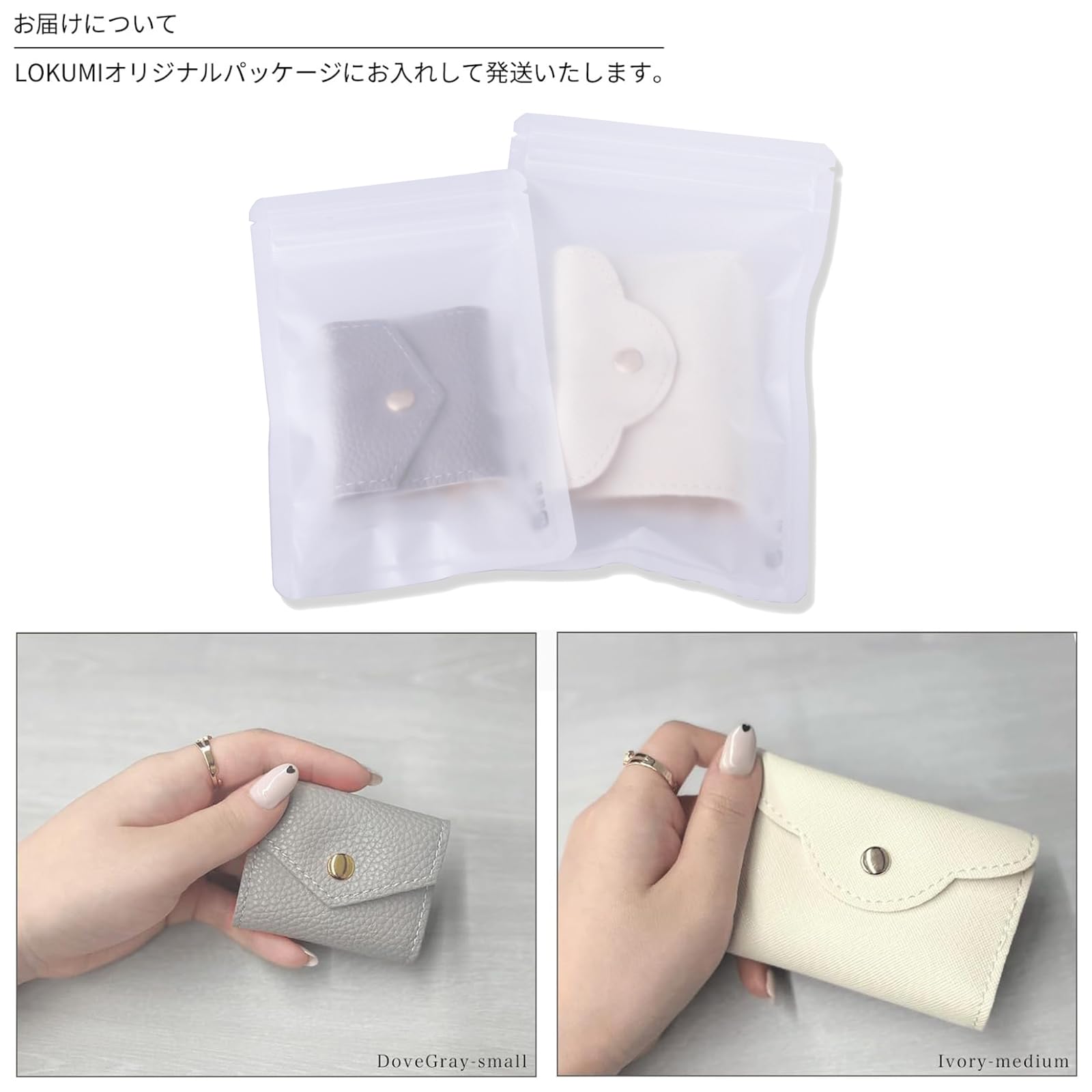 ◆カラー - ダブグレー、ライトベージュ、ブラック(全てスモールサイズ)/アイボリー、ホワイトゴールド(ミディアムサイズ)