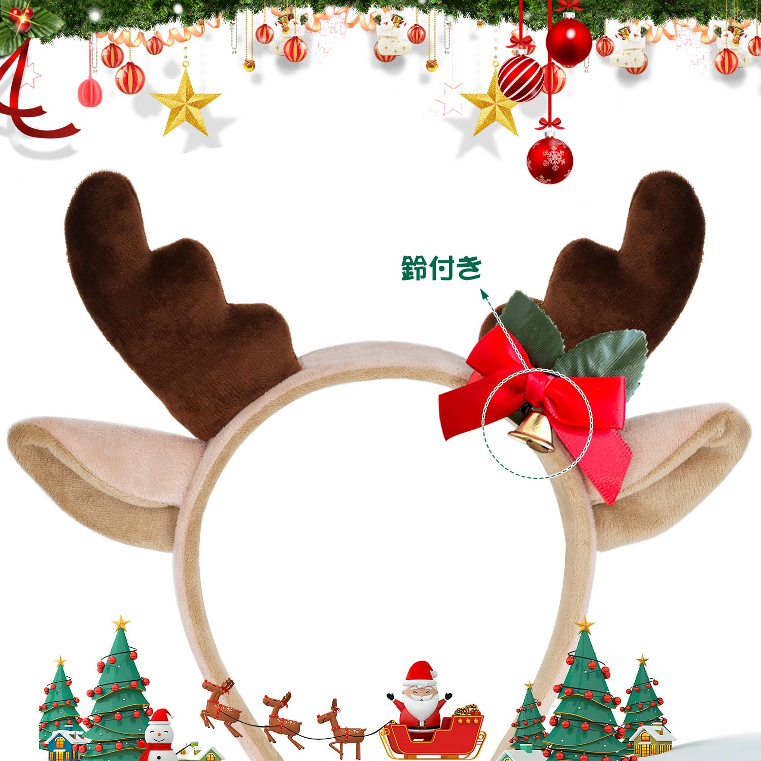 【セット内容】トナカイカチューシャ×1、サイズ:25.5×20㎝。トナカイの形にデザインされ、クリスマスに最適な飾りです