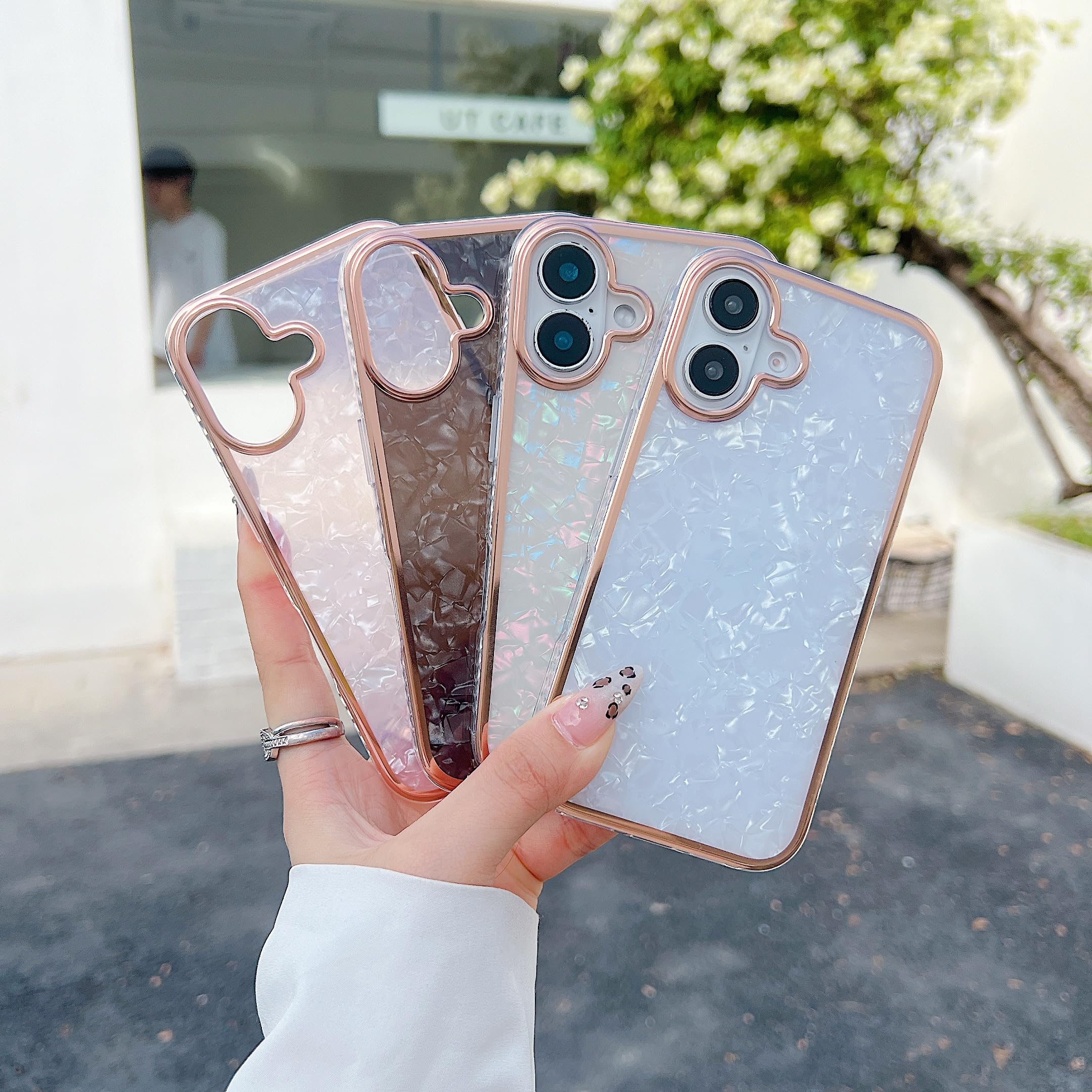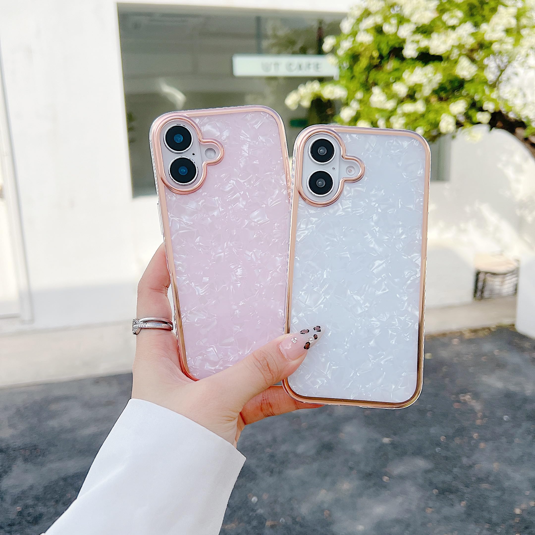 リアパネルには、真珠貝のような神秘的な光沢を放つ特殊素材を採用。光の角度によって虹色に変化する繊細な輝きが、他にはない高級感を演出します。マーブル柄(大理石風)デザインとシェルプリントの組み合わせが、スマホを唯一無二の存在へと引き立てます。