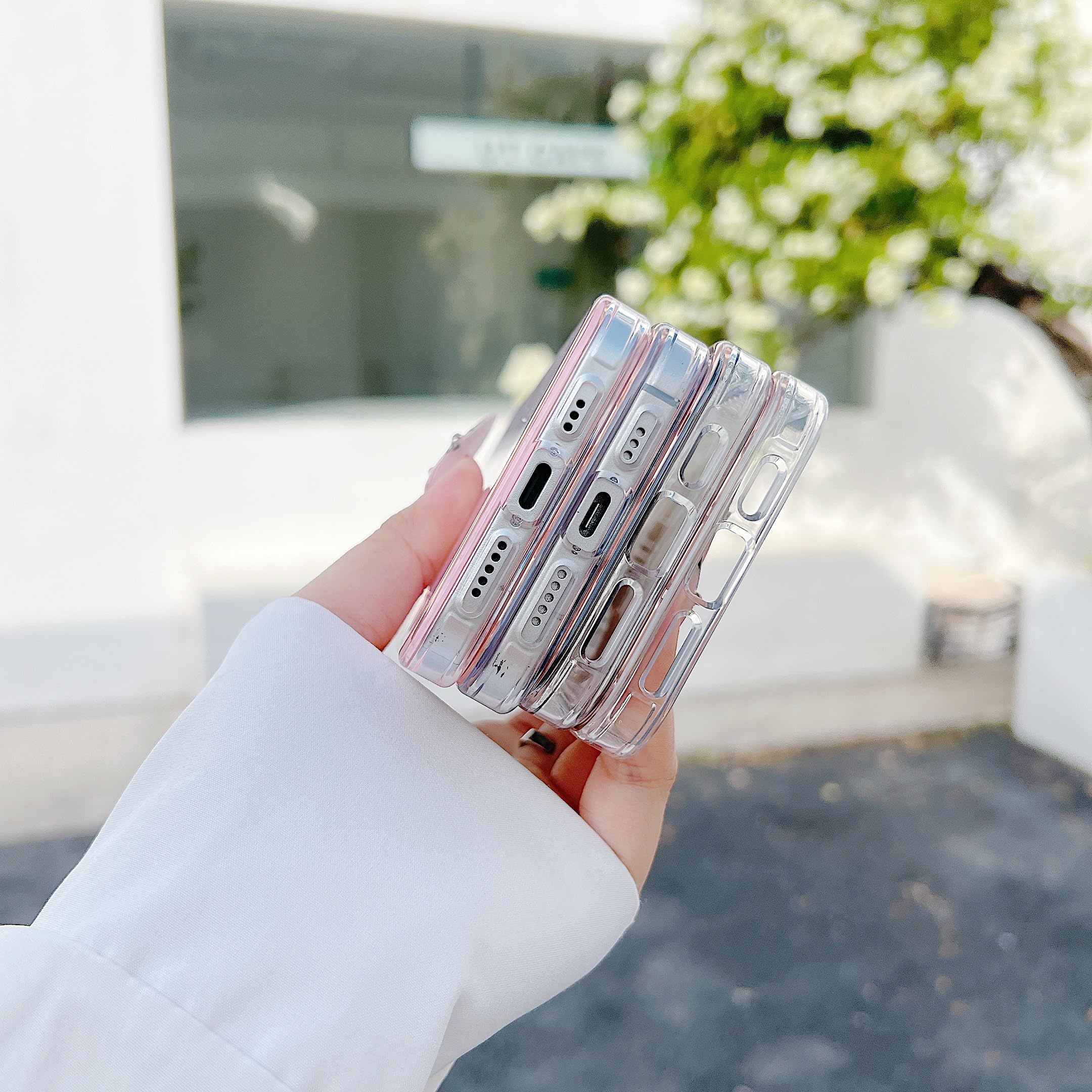 側面は透明TPU素材で端末本体のカラーをそのまま活かし、縁部分には上質なローズゴールドメッキを施しました。上品で洗練された雰囲気を持つおしゃれで可愛いスマホケースです。