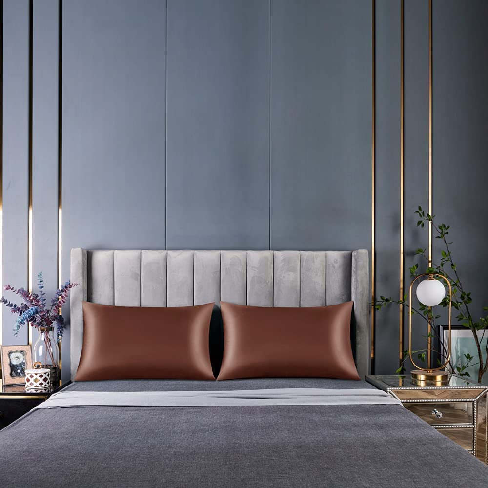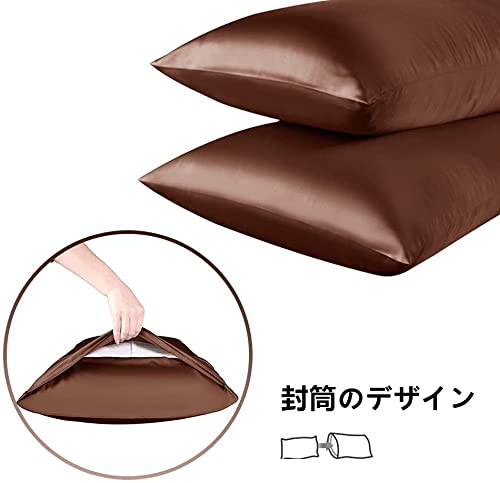 【特価セール】枕カバー 2枚セット サテンの枕カバー 封筒式ピローケース 美肌 美髪 両面シルクタイプ 滑らかな材質 静電気防止 (43*63 ブラウン)