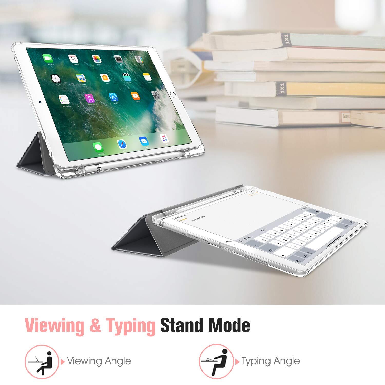 Fintie iPad Air 2019 ケース iPad Air3 / Pro 2017 10.5インチ バックカバー Apple Pencil 収納可能 三つ折スタンド スリープ機能 軽量 薄型 半透明 傷つけ防止 PUレザー(モデル番号A2152、A2123、A2153、A1701、A1709)(スペースグレー)