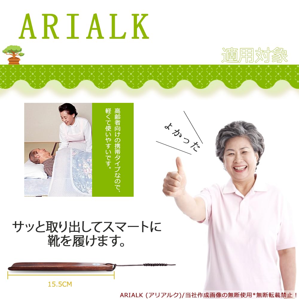 ARIALK (アリアルク) 靴べら 木製 携帯 くつべら 軽量 キーホルダー 付き 携帯用 ブラウン 15.5 cm