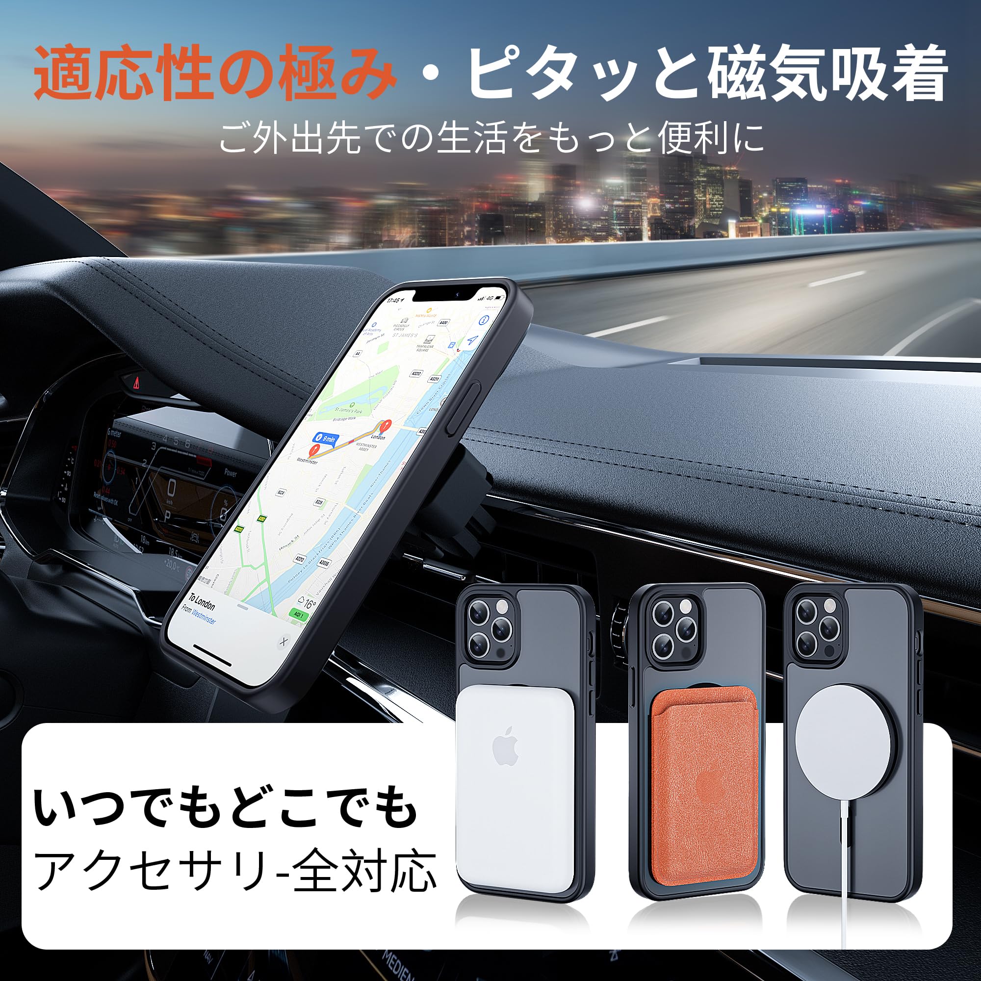 【MagSafe対応・強力な吸着充電】内蔵された強力なマグネットでピッタリと密着し、MagSafeに対応した全ての機能と完全に互換性があります。iPhone 12/12 Pro の充電効率が大幅に向上しました。 アイフォン12/12 Pro ケース を外すことなく、MagSafe充電器、MagSafeバッテリー、MagSafe車載ホルダー、MagSafeリングなど、全てのMagSafeアクセサリーを使用できます。スマホを充電する時は、アイフォン 14/13ケースを装着したままMagSafe充電器に取り付けるか、Qi規格の充電器の上に置くだけです。充電できていなかったということを避けられるのが魅力です。より簡単で、より高速で、日常生活に便利な iPhone 12/12 Pro ケース です。