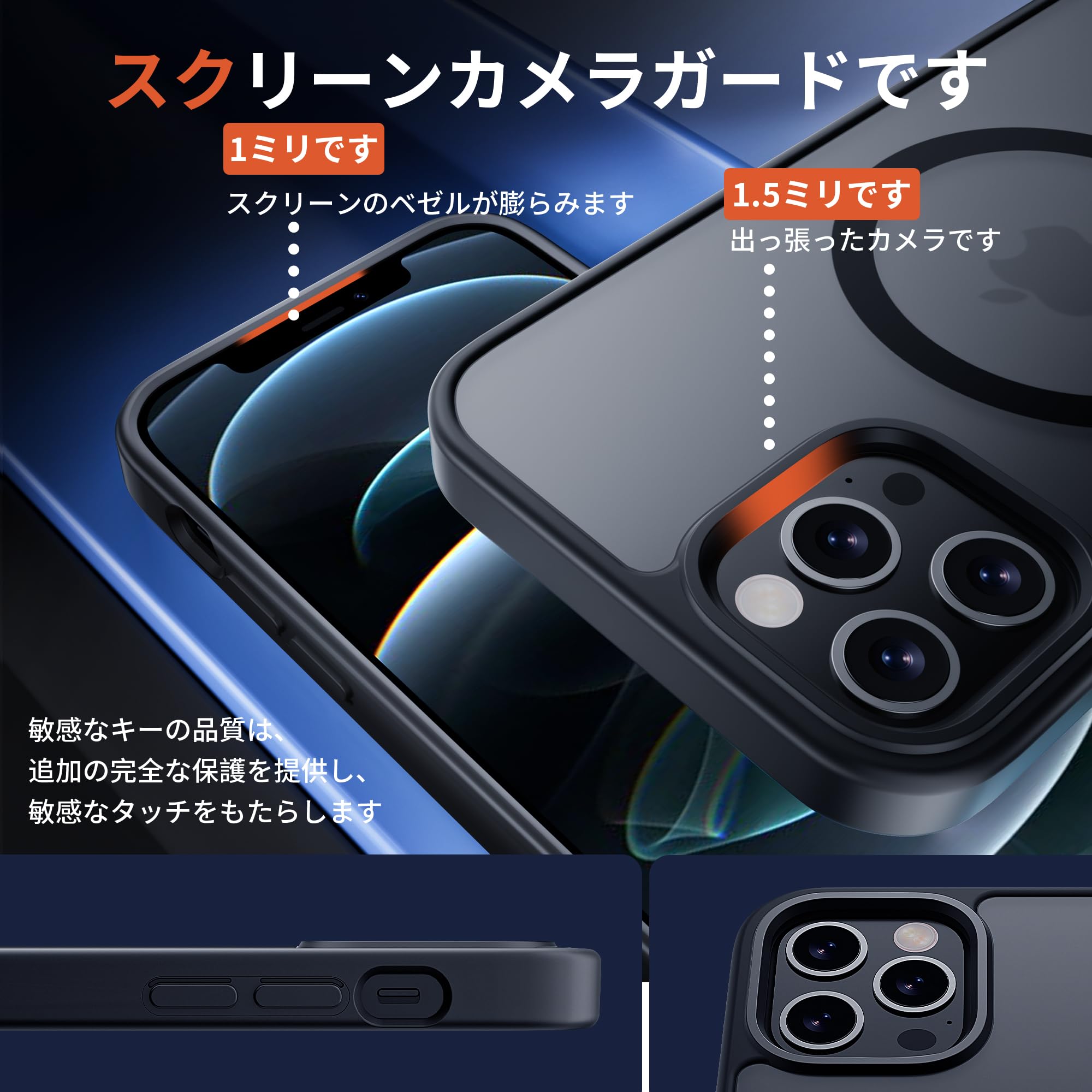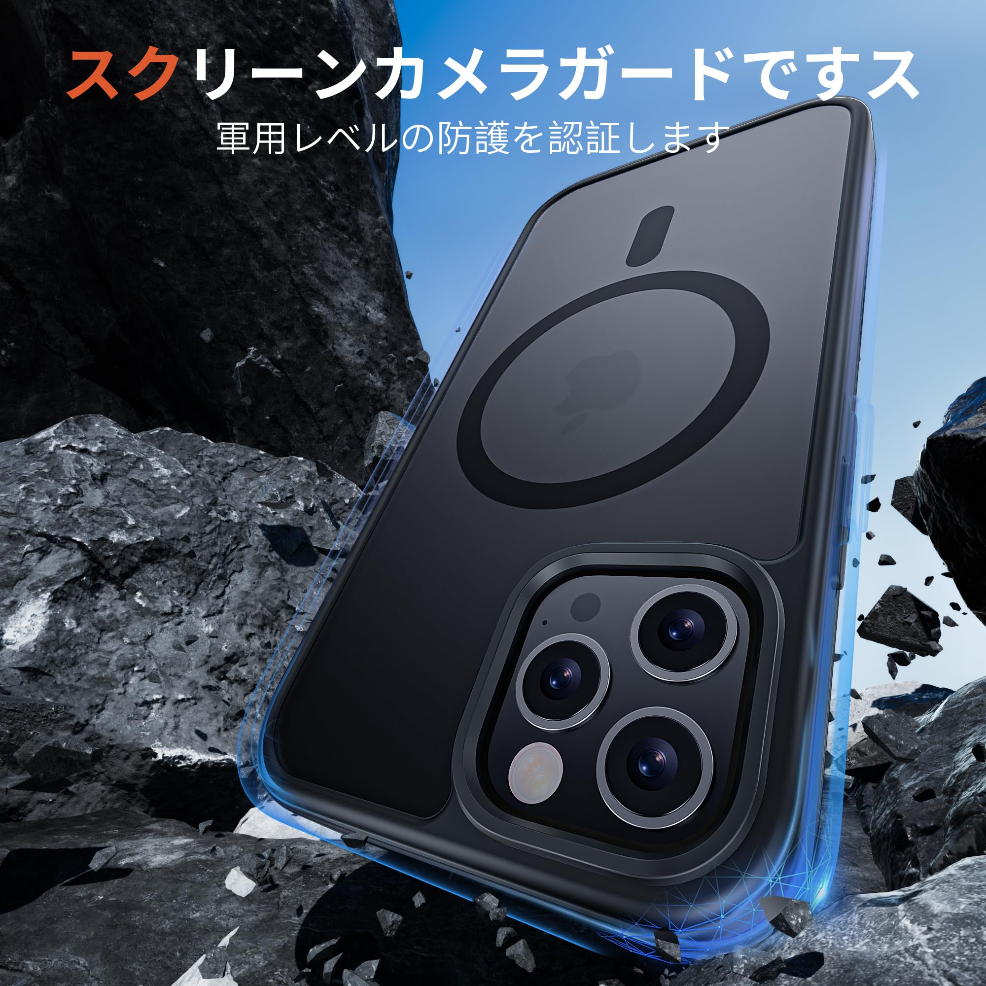 【落下の不安をゼロに!・MIL 規格対応】頑丈なPC背面と柔軟なTPUフレームを採用し、四隅にエアクッションを配置したデザインで、防塵、防傷、滑り止め衝撃吸収に優れ、日常使用に対する確かな保護を提供する iPhone 12/12 Pro スマホケース です。また、液晶画面より1.2 mm、カメラレンズより1.5 mm高い高低差設計を採用し、カメラ周囲を完全に覆うレンズ保護設計で、スマートフォン本体を徹底的に守ります。平面に置いてもうっかり落としてもスマートフォンを保護できる iPhone 12/12 Pro カバー です。