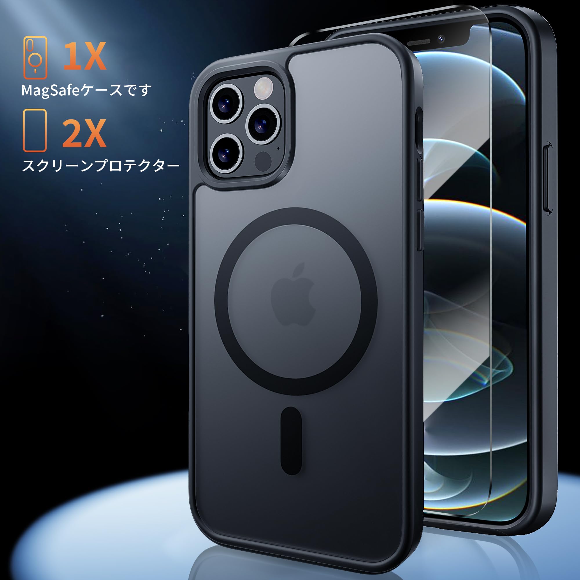 【在庫セール】Bruzaio iPhone 12/ iPhone 12 Pro 用 ケース【強化フィルム2枚付き】Magsafe対応・米軍規格 いphone12 ケース 半透明 耐衝撃 指紋防止 滑り止め マグネット搭載 ワイヤレス充電 耐久性 全面保護 黄ばみなし あいほん12/12 Proスマホケース 6.1インチ用,ブラック