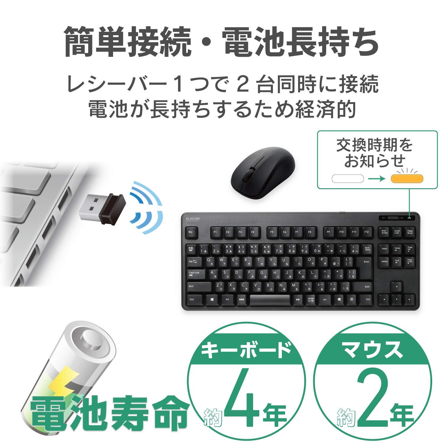 エレコム キーボード 【マウスセット】 ワイヤレス (レシーバー付属) メンブレン コンパクトキーボード ブラック TK-FDM105MBK