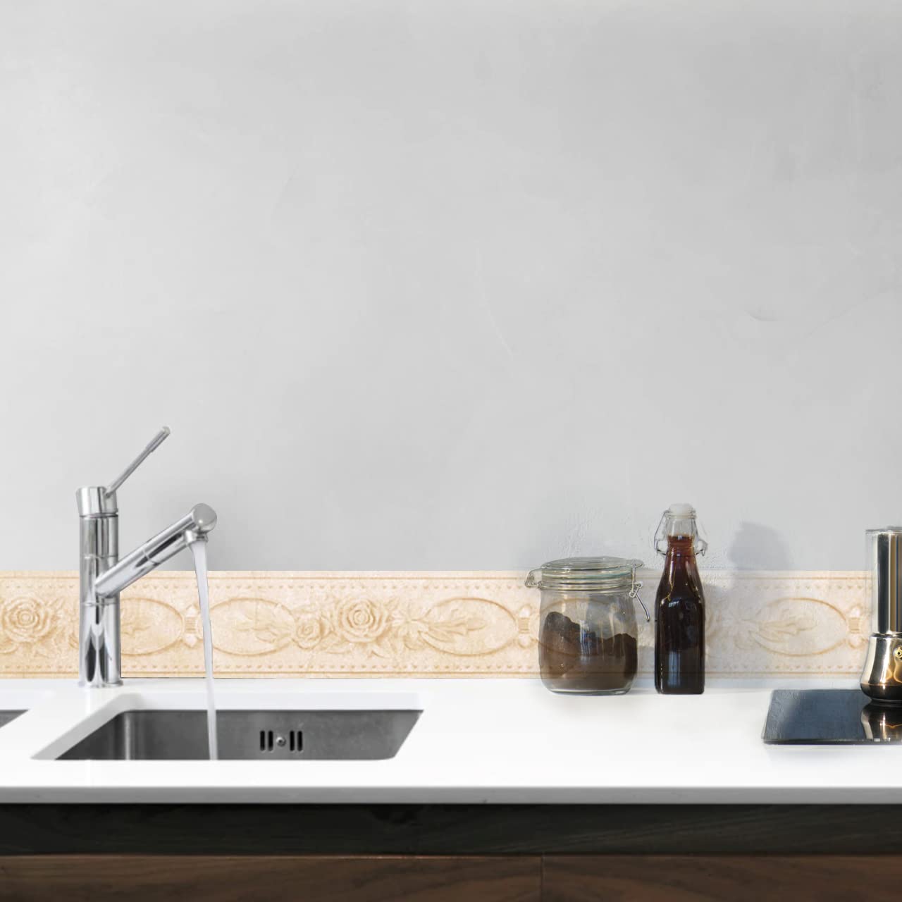 【特価セール】【SRrabbit】手軽にDIY! おしゃれな薔薇柄 トリムボーダー はがせる 壁紙シール リメイクシート マスキングテープ 防水 補修 ウォールステッカー 10.5㎝ × 5m( ブロンズ)