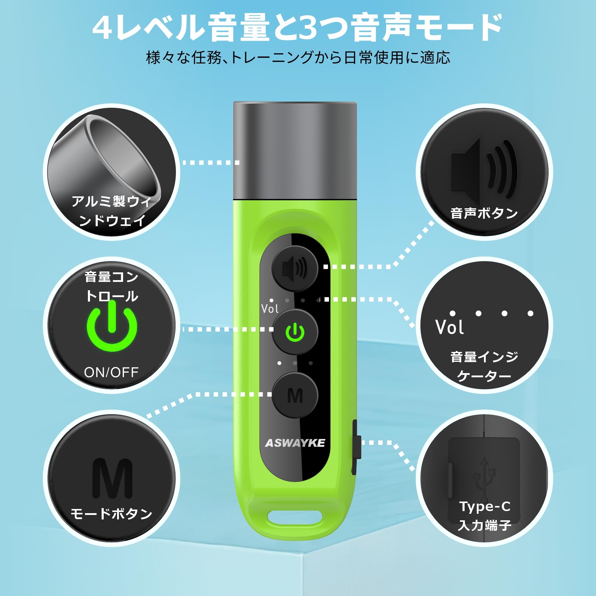 ASWAYKE 電子ホイッスル IPX5防水 大音量 125db 充電式1000mAh【4段階 3種類のホイッスル音】電子笛 スポーツ 審判 防災 防犯k1