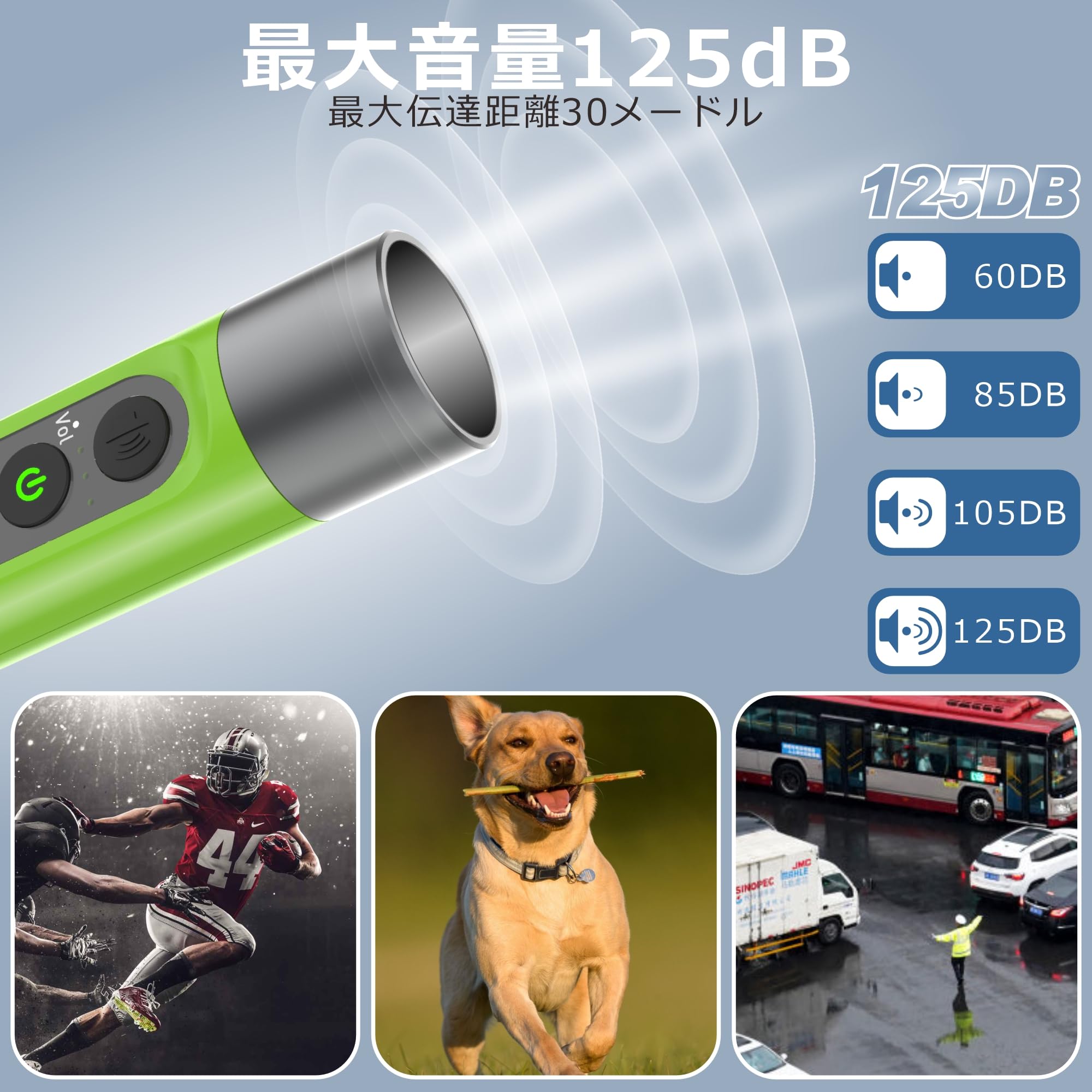 「高品質で大音量」:3種類ホイッスル音4級音量−−モード切替ボタンを押して、3つ異なる種類のホイッスル音を選択できます。最新技術で開発され、16K高デコードチップと厚みのあるアルミニウム合金発音管を搭載され、最大音量125dbで、音響効果はさらに優れています。4級音量の使用は便利で、様々な場所に対応します。