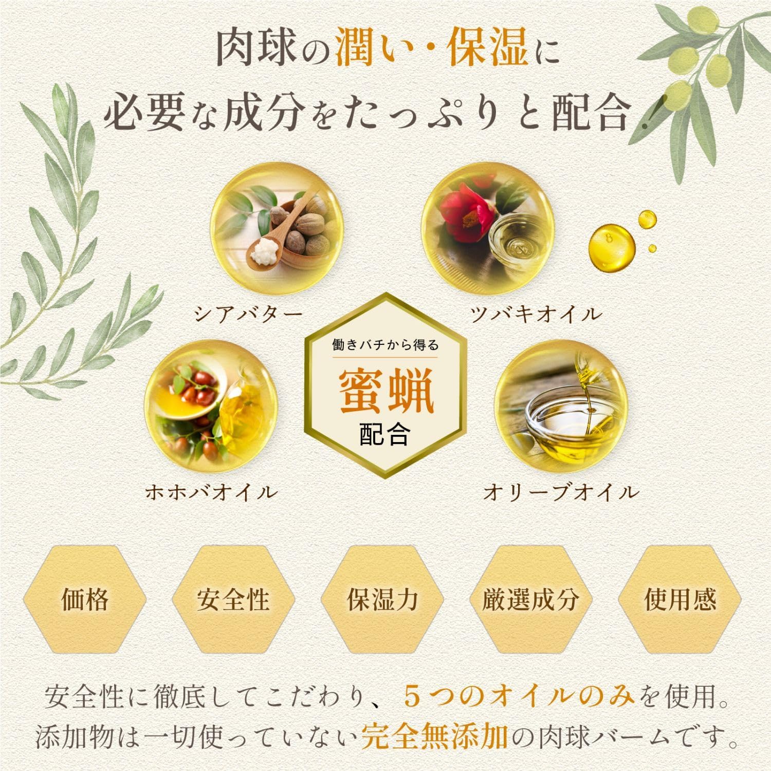 ?世界3大オイルのホホバオイル、椿オイル、オリーブオイルが肉球を保湿し、うるおいを保ちます。