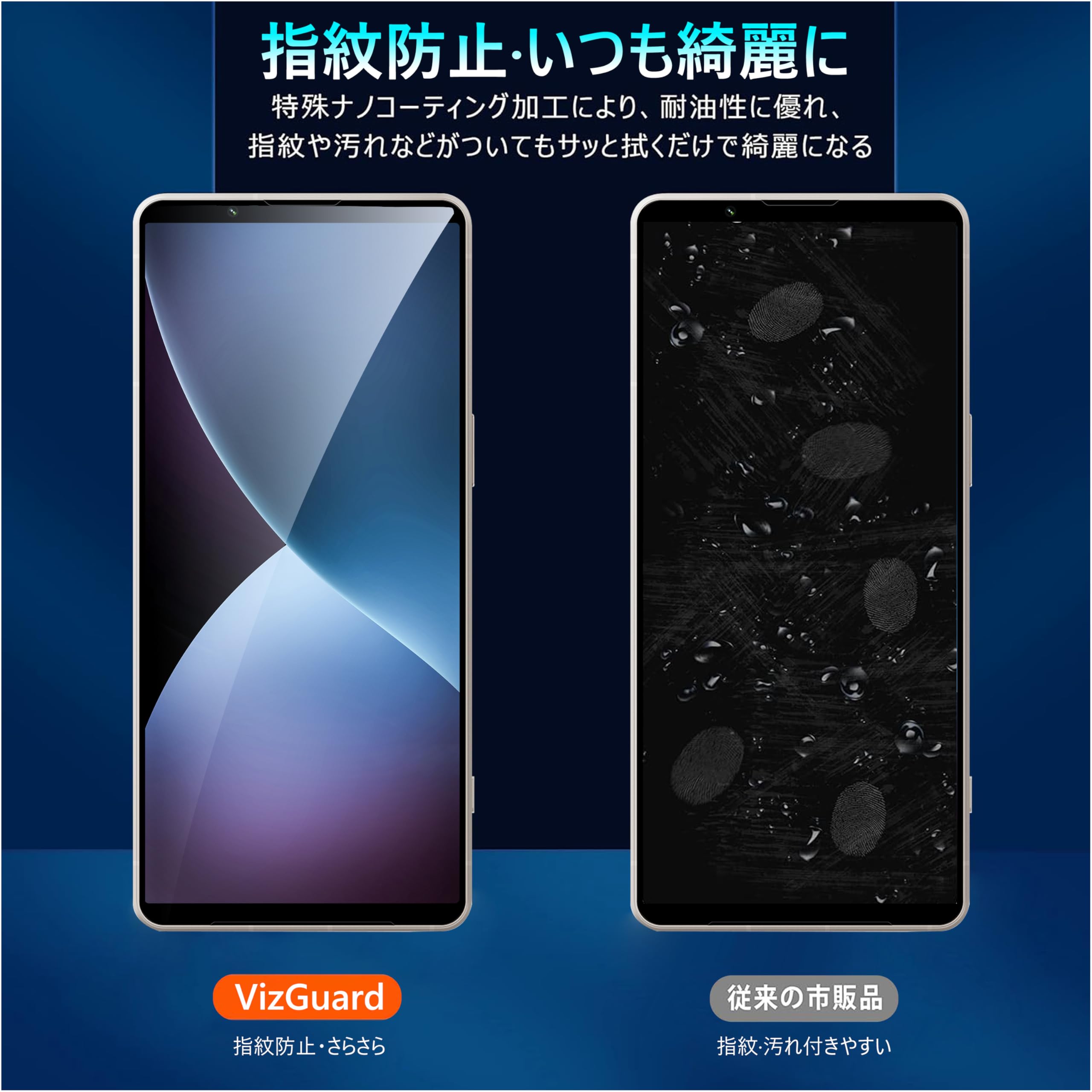 【指紋防止、飛散防止】特殊コーティングが施されたため、指紋防止の同時に、付着したあぶらや水滲みなど簡単に拭き取ることが可能です。油分付着を防ぐコーティングによって、指紋などの汚れからもスクリーンをきれいに保ちます。さらに、飛散防止加工により、万が一ガラスが破損した場合も飛び散らず、破片は張り付いたままの状態になるので、スクリーンをきちんと保護しながら破損による怪我を防ぎます。