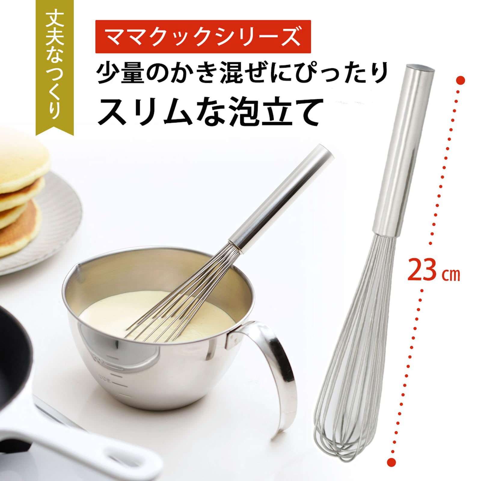 16本の線材を使用し、頭部スリムにつくり上げたことによって、キメ細かな泡立てやメレンゲが作りやすい