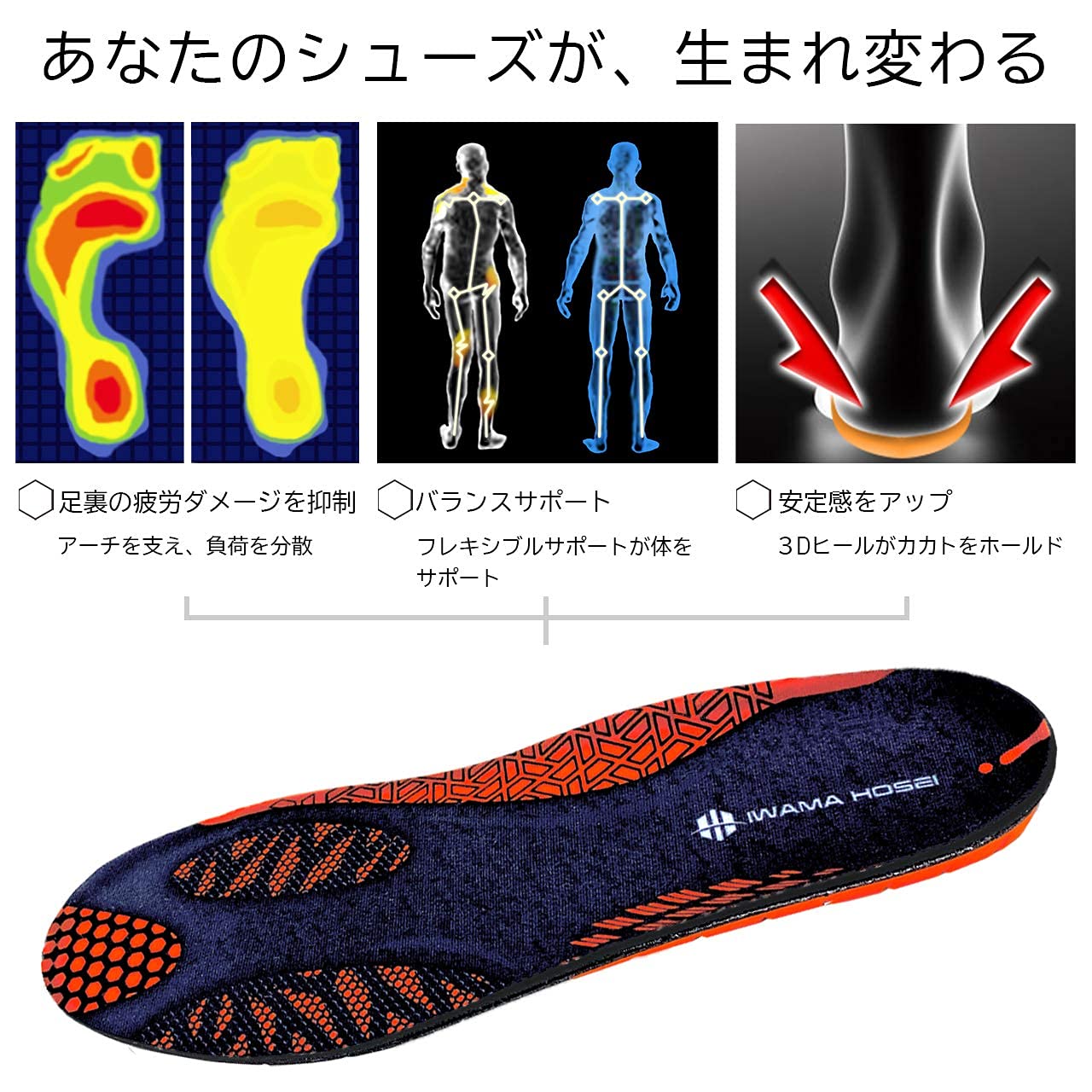 IWAMA HOSEI (岩間縫製) インソール 中敷き 衝撃吸収 メンズ 25.5〜27.5㎝ スポーツ 立ち仕事 土踏まず シューズ GYRO FLEXI