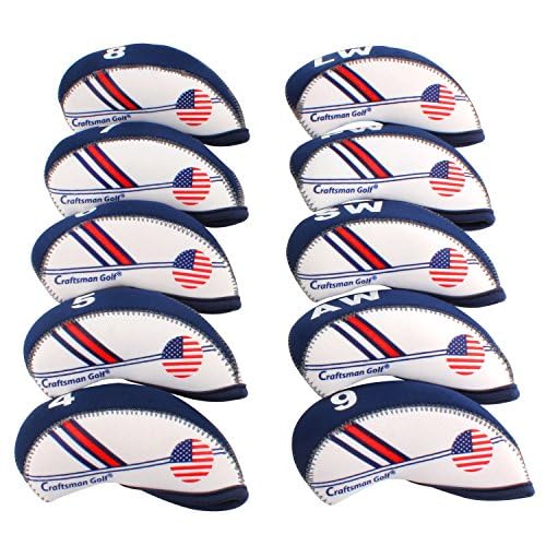 CRAFTSMAN(クラフトマン)ゴルフアイアンカバー クラブヘッドカバー 10枚セット (4-9PWAWSWLW) ネオプレン製 伸縮性ある アメリカフラグ柄 ホワイト ブルー