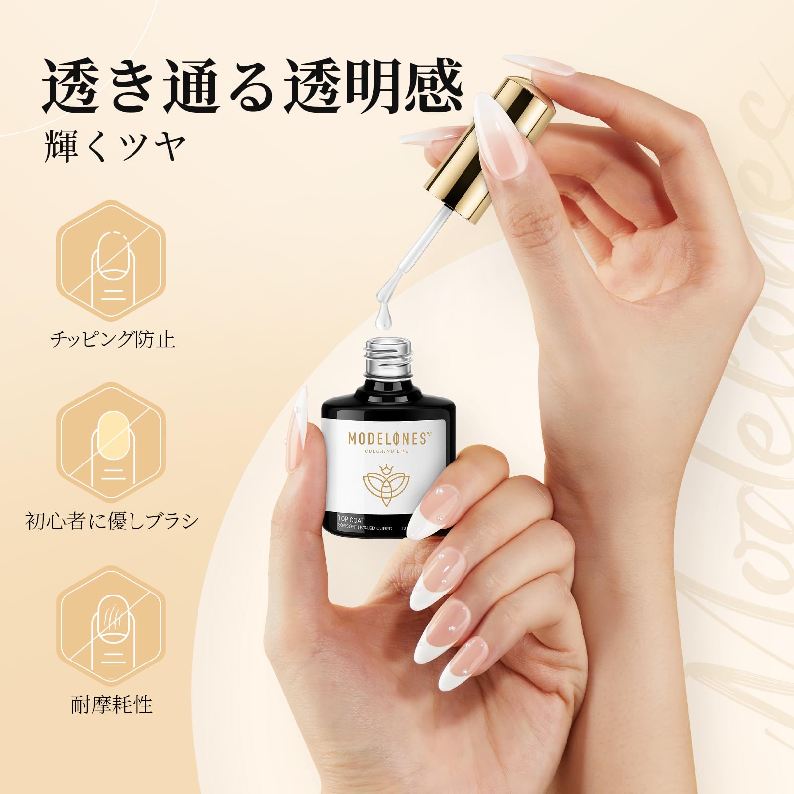 処方をアップグレード:MODEKONESジェルポリッシュのトップコートとベースコートセットは、アップグレードされた新しいフォーミュラを採用し、ネイルジェルの表面を傷つけることなく、鏡のように滑らかな仕上がりを長時間キープします。簡単に塗布でき、自宅で手軽にプロフェッショナルなジェルネイルデザインを楽しみたい初心者の方に最適なアイテムです。