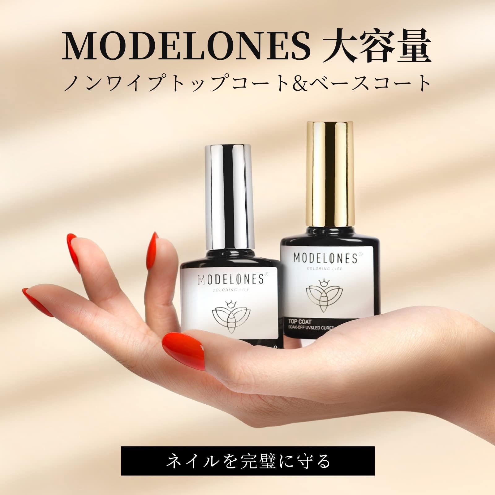 【特価商品】Modelones ジェルネイル トップコート ベースコート 10ml 2本セット ノンワイプ 拭き取り不要 大容量 速乾 ジェルネイル用 UV/LED対応 カラージェルネイル
