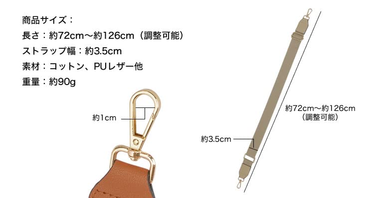 長さ:約72cm?約126cm(調整可能) ストラップ幅:約3.5cm 素材:コットン、PUレザー他 重量:約90g