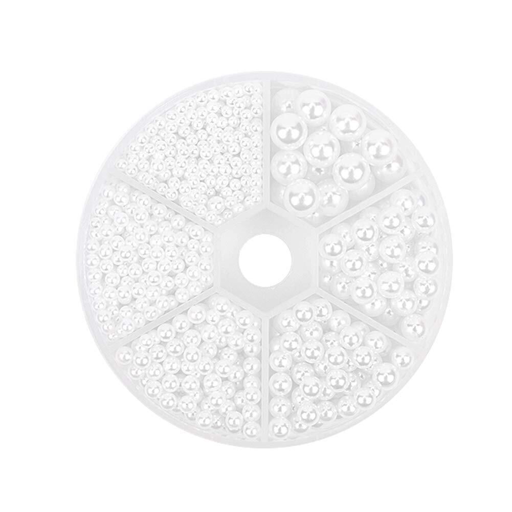 PandaHall Elite 穴なしパール パール ビーズ 穴なしビーズ 真珠 ビーズ 1500個セット 2.5mm/3mm/4mm/5mm/6mm/8mm アクセサリーパーツ ネイル パーツ ホワイト ヘアピン かんざし ピアス イヤリング ブレスレット ネックレス 手芸 DIY用 ハンドメイド材料 クラフト用品 収納ケース付き