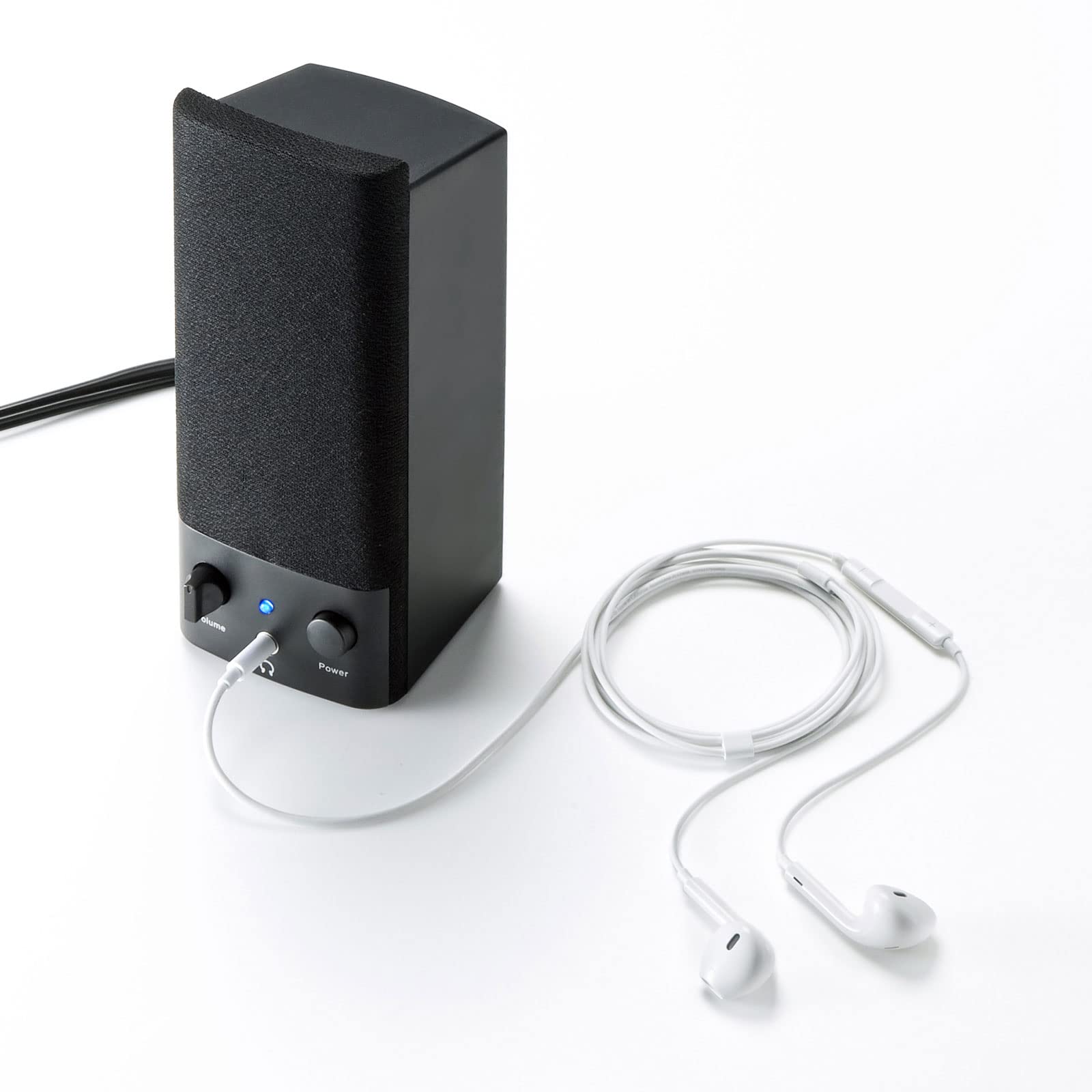 ●アンプ内蔵でヘッドホンステレオの出力端子やパソコンの音声端子につなぐだけで音楽を楽しめます。●実用最大出力5W(2.5W+2.5W)で小型ながらパワフルなサウンドを楽しめます。●深夜や周りに気を使う環境にも便利なヘッドホン端子を内蔵しています。●電源内蔵なのでコンセント周りをすっきりと配線できます。■カラー:ブラック■実用最大出力:5W(2.5W+2.5W)■周波数特性:200~20000Hz■スピーカー形式:バスレフ型フルレンジスピーカーシステム■スピーカーサイズ:2×3.5インチ(直径50×88mm)■ロードインピーダンス:4Ω■入力端子:ステレオミニプラグ(3.5mm)■電源:内蔵■外部出力:ヘッドホン端子■サイズ:W60×D66×H150mm■重量:474g■ケーブル長:パソコン接続ケーブル/約1.2m、スピーカー間ケーブル/約1.0m、電源コード長/約1.2m■セット内容:本体、取扱説明書