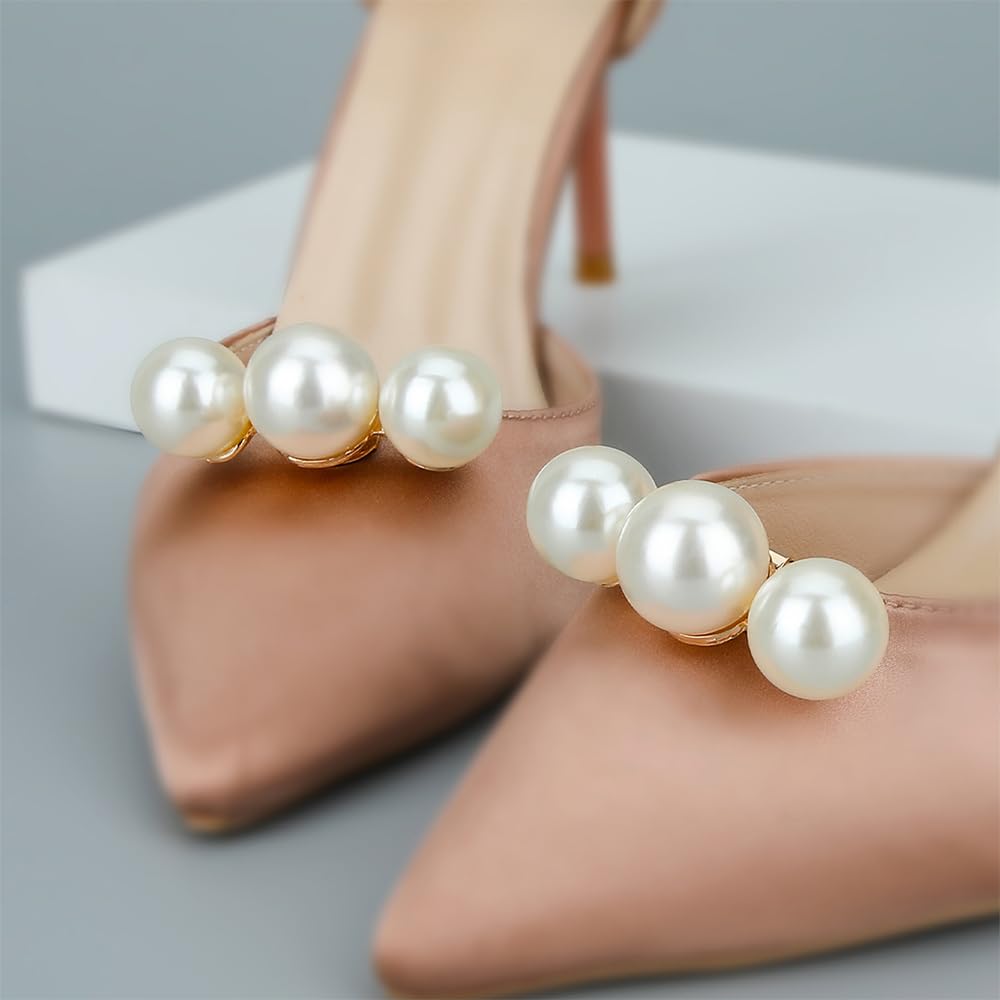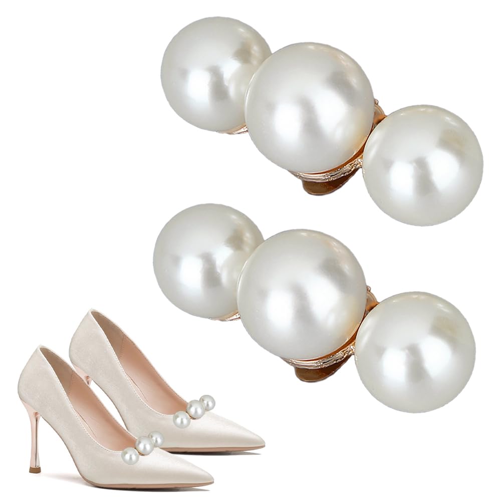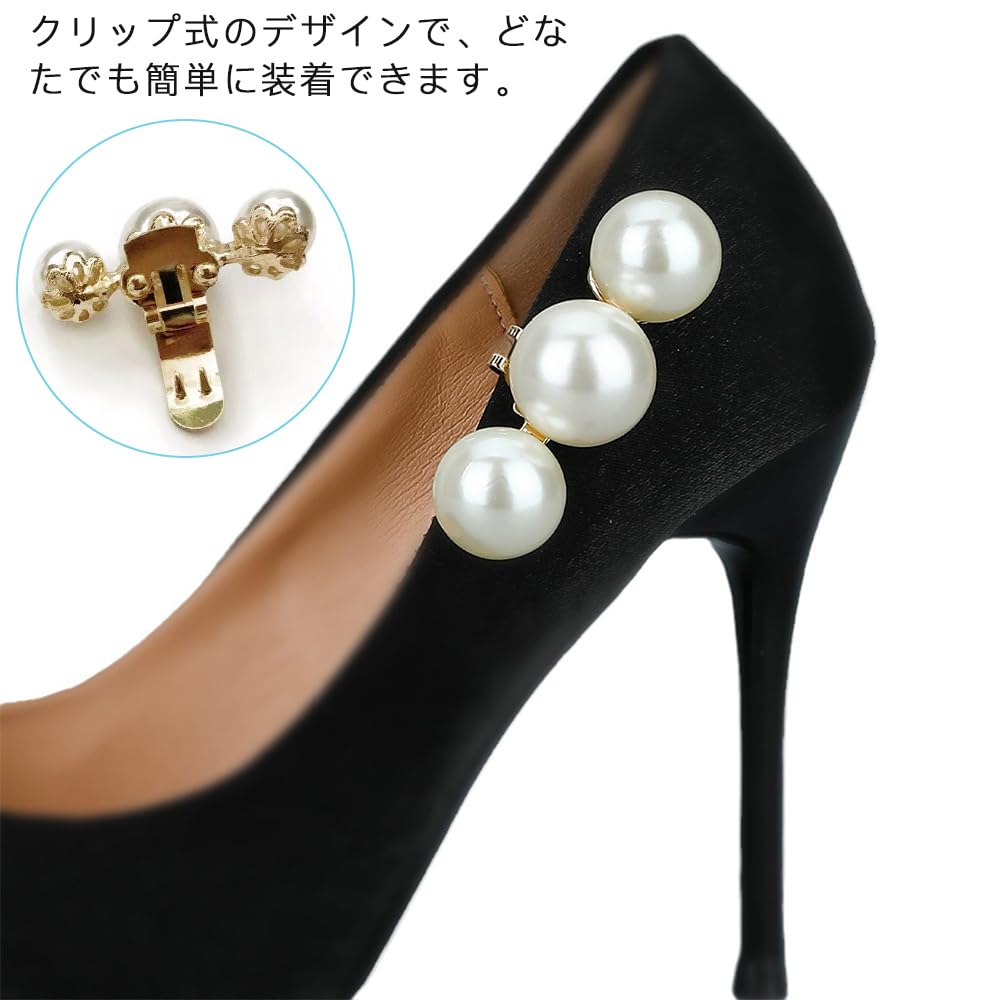 【パールデザイン】このシューズクリップは、パールが3つ並んだ美しいデザインが特徴。シンプルなハイヒールに装着するだけで一気にゴージャスに変身します。