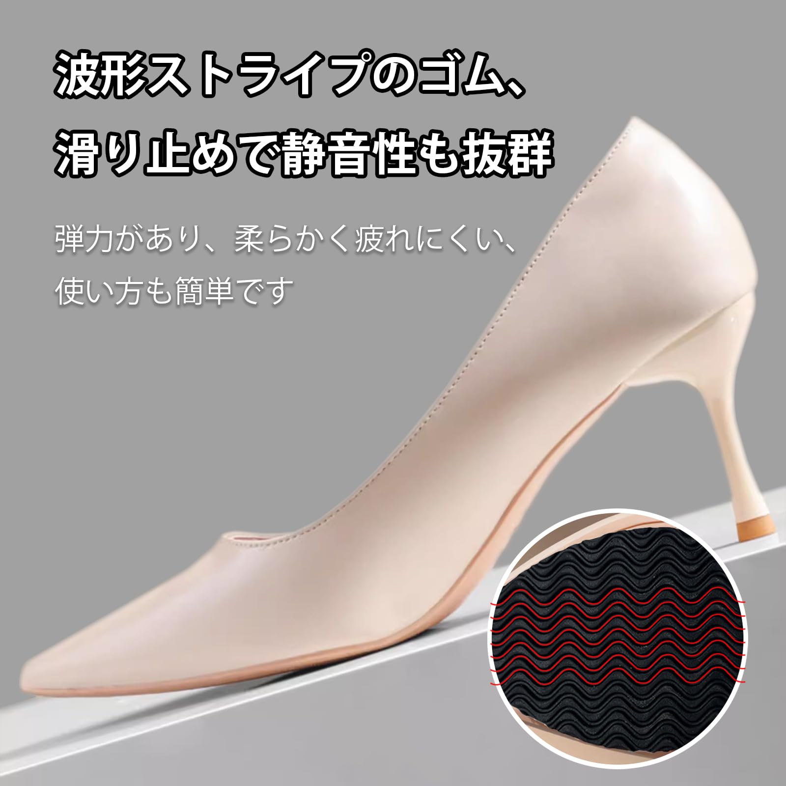 【滑り止め設計】波状のゴム底で、滑り止め効果が大幅に向上します。2.2mm厚の素材で、靴底の滑り止め性能を向上させ、靴底を優しく保護します。