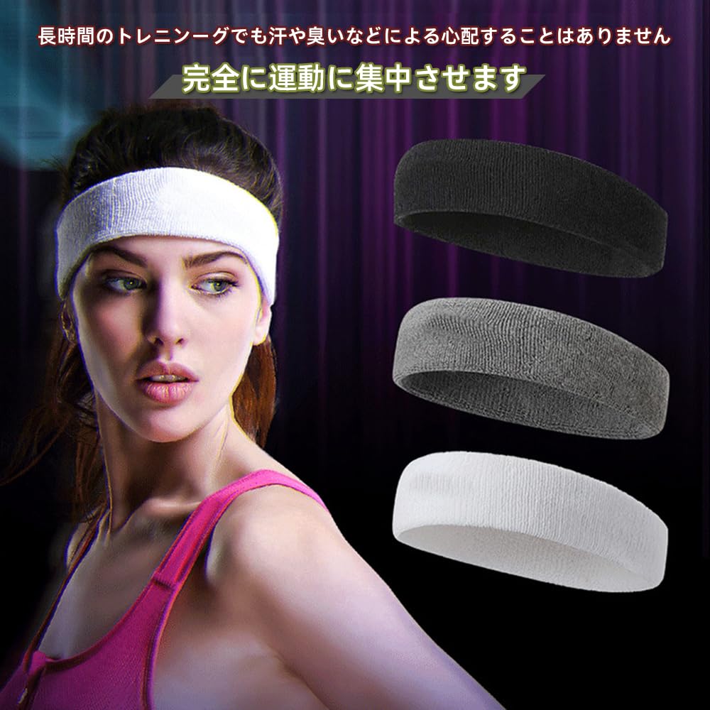 Renjzle ヘッドバンド ヘアバンド 汗止め 吸汗通気 伸縮性 肌触りが柔らかい 洗顔用 スポーツ用 ランニング ダンス ヨガ ジョギング 綿 男女兼用 運動やアクティブシーンに最適